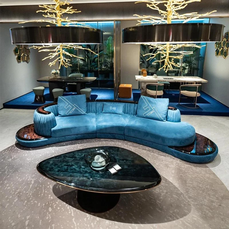 フェンディ本革ソファー|イタリアンラグジュアリーの別荘スタイル|曲線デザインで贅沢なリビングやKTVルームにぴったり!即納可能な高級家具。