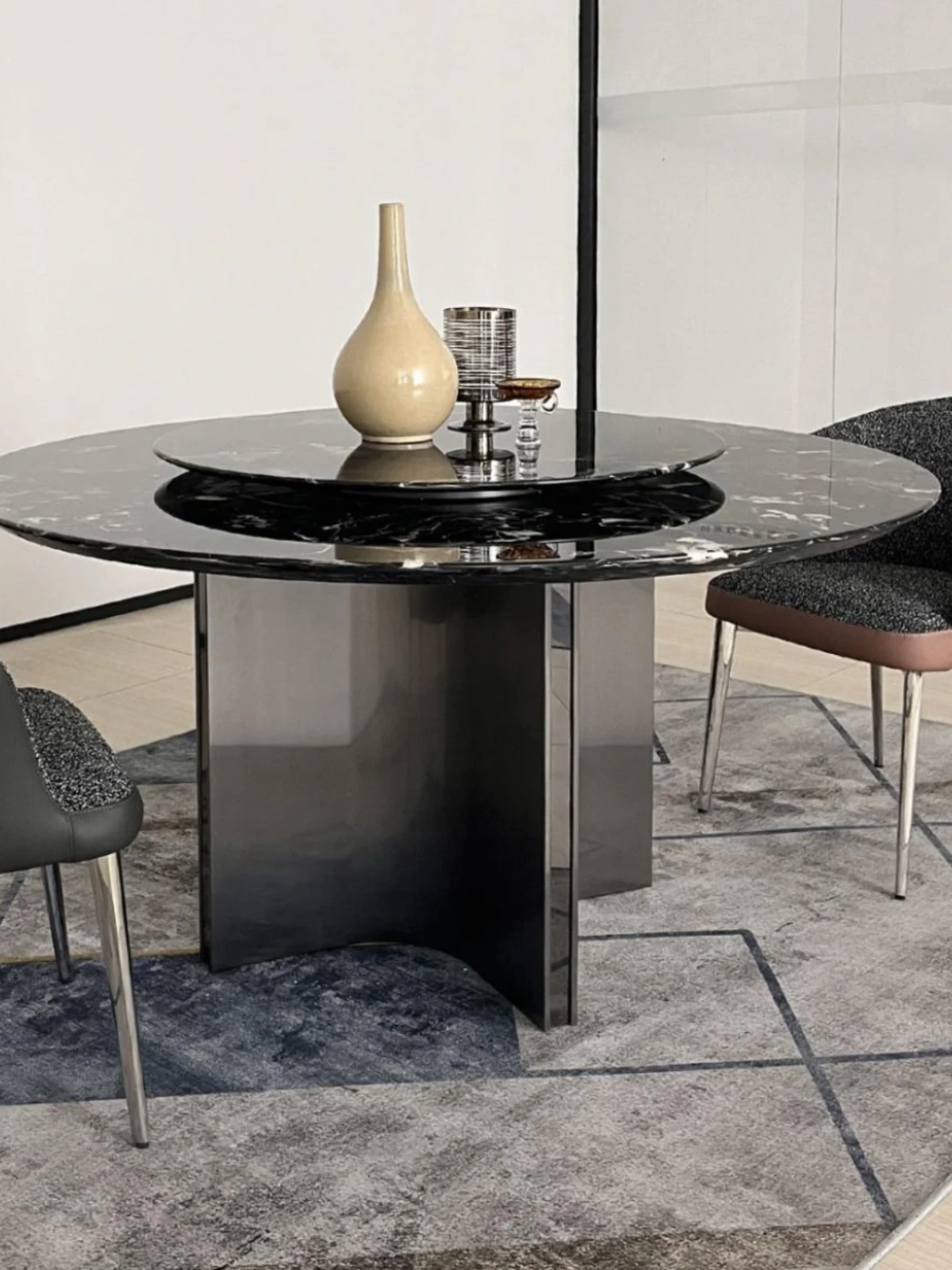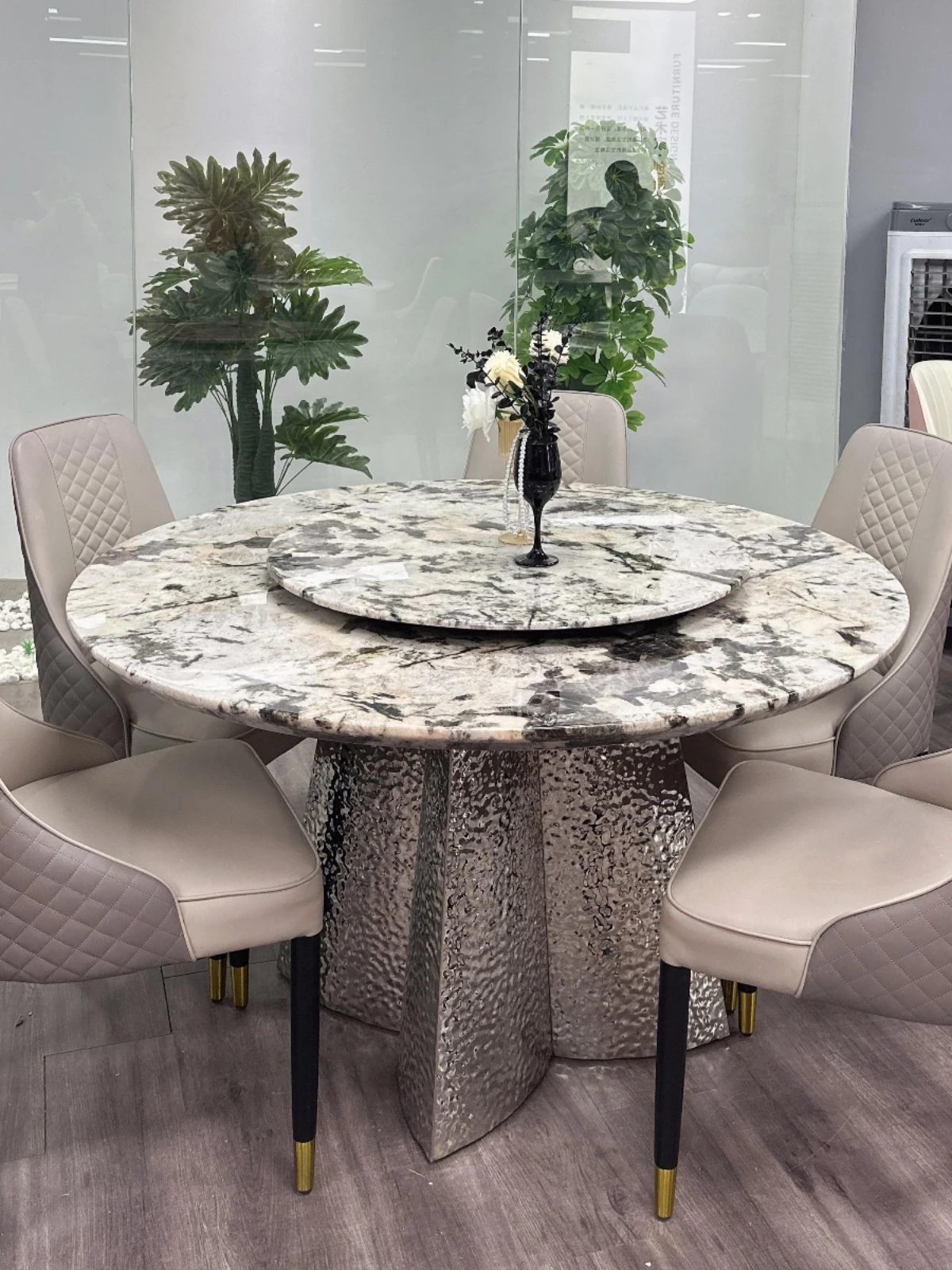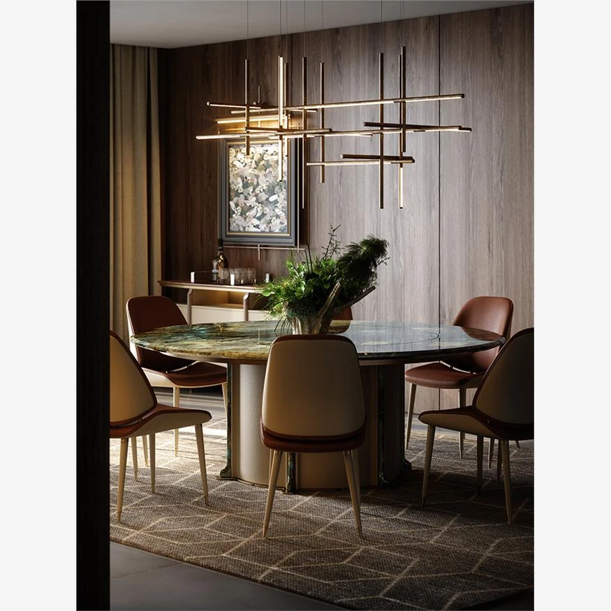 Luxury Round Dining Table with Embedded Electric Turntable - Complete Design Solution for Villas and Mansions, Perfectly Coordinated for Your Dining Room Series.