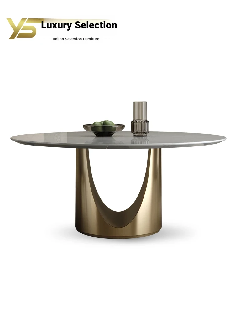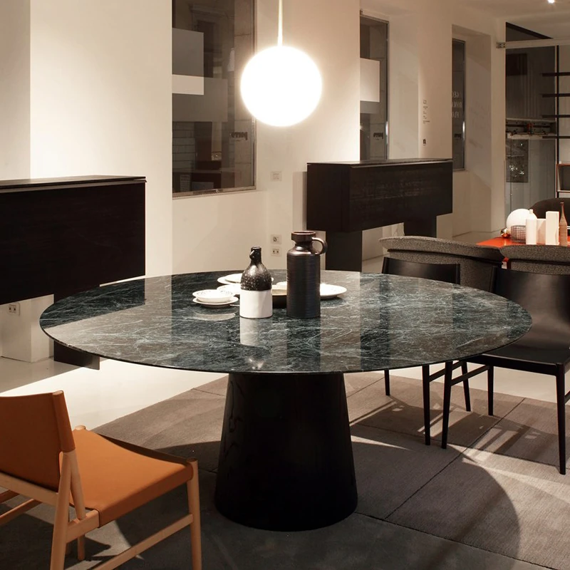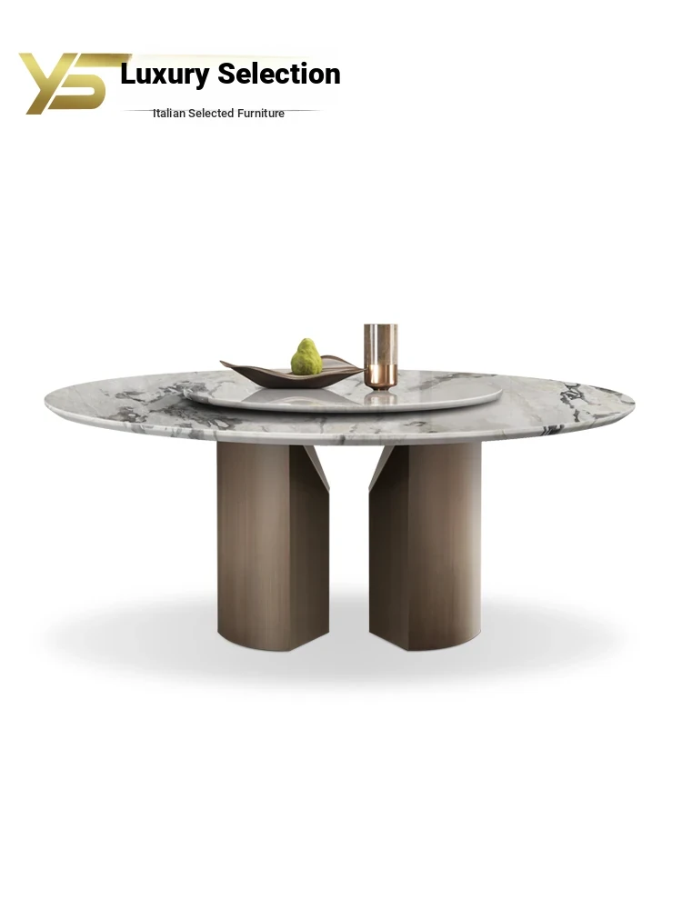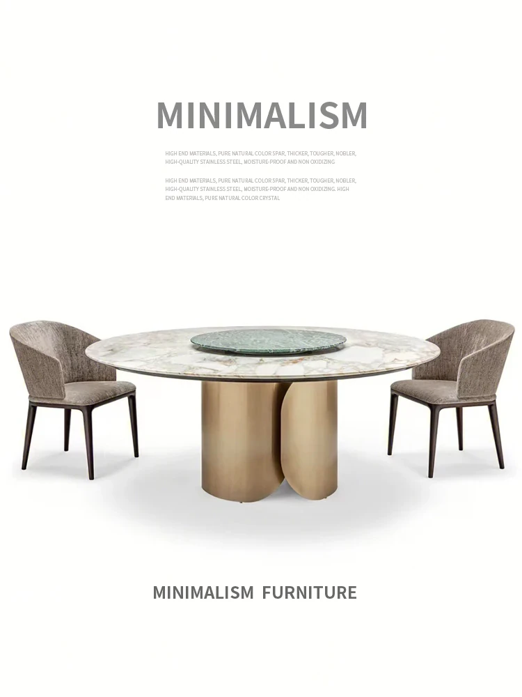 Luxury Natural Marble Round Italian Dining Table - High-End Villa Minimalist Design for Family Gatherings and Entertaining