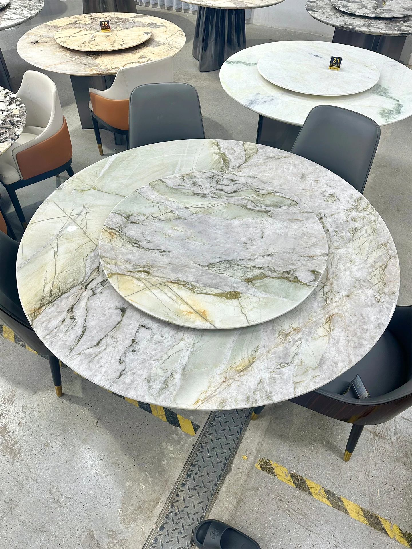 Elegant Selection: Karli Ice Jade Natural Marble Round Dining Table - Italian Light Luxury with Rotating Tray for 6-8 People, Perfect for Home Dining Experience