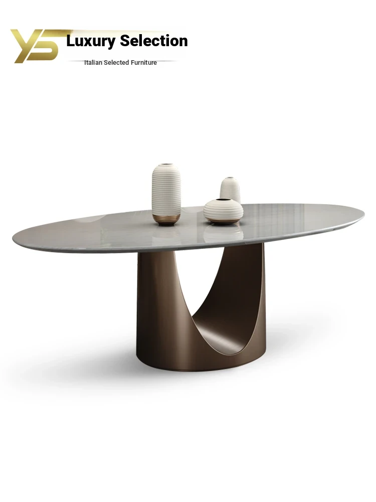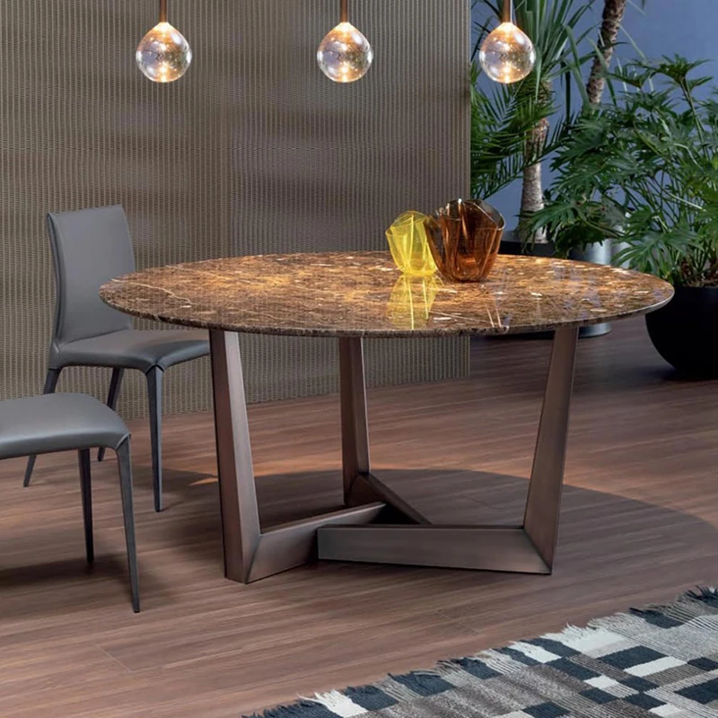 Modern Italian Natural Roman Stone Dining Table - Elegant Oval Design for Designer Showrooms and Villas, Perfect for Dining Rooms