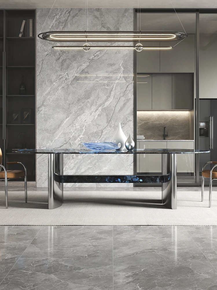 Brazilian Imported Pure Natural Blue Jade Luxury Dining Table - Italian Light Luxury High-End Villa Sapphire Marble Dining Table