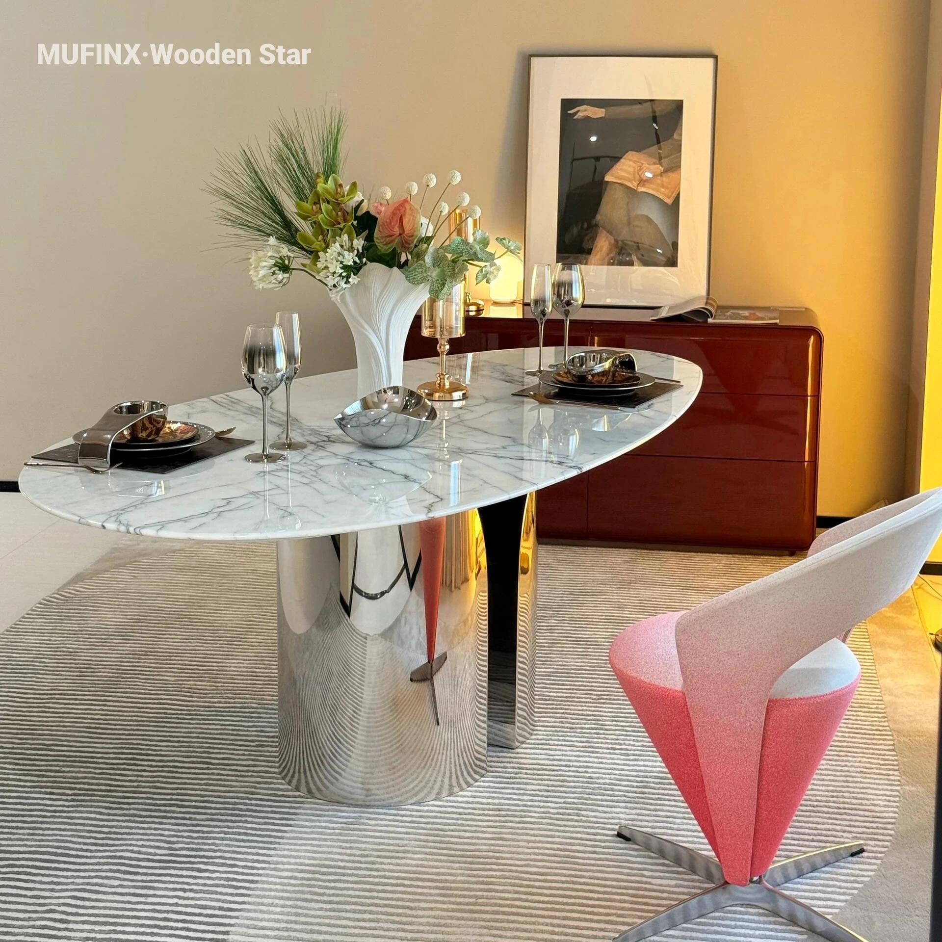 Florence Natural Luxury Stone Dining Table - Elegant Italian Design for Villas and Spacious Homes, Perfect for Upscale Dining Experiences