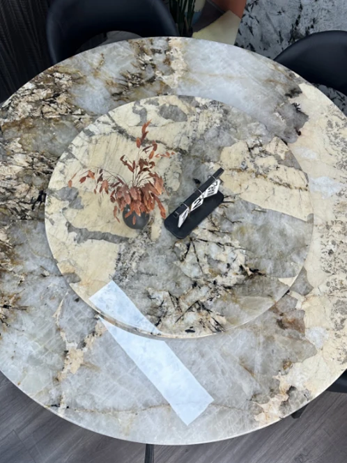 Italian Luxury Round Dining Table - Elegant Embedded Design for Villas and Mansions - Perfect for Dining Room Series - New 2024 Collection