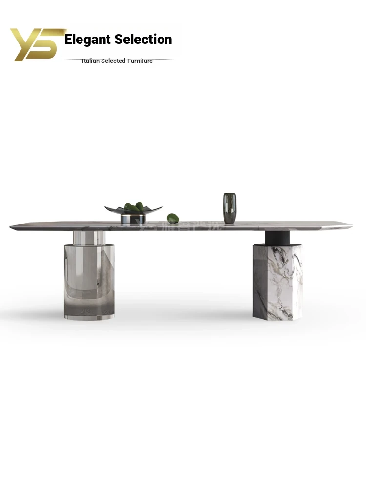 2025 New Luxury Natural Stone Fendi White Dining Table - Elegant Designer Marble Table for High-End Villas