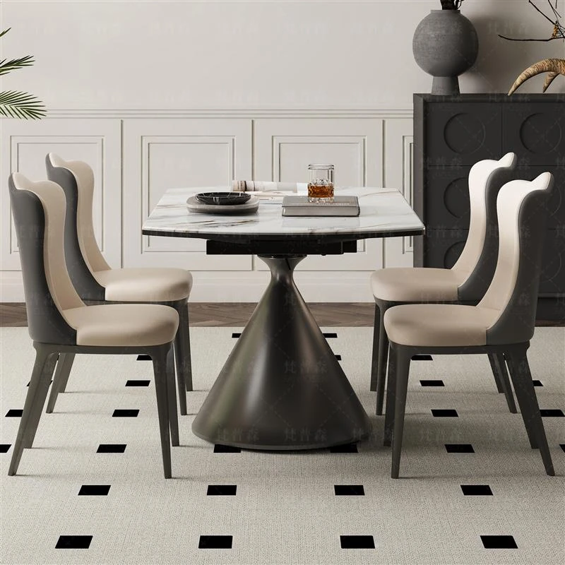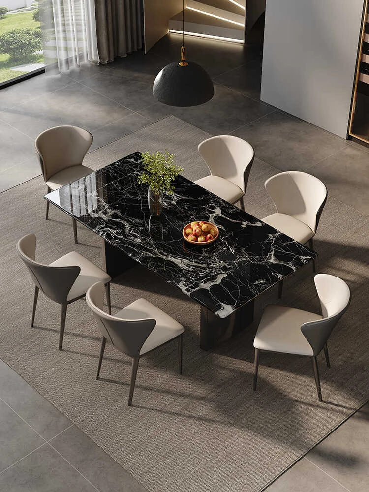 Italian Minimalist Luxury Natural Imported Elephant White and Black Rose Marble Rectangular Dining Table and Chair Set for Home - Elevate Your Dining Experience with Timeless Elegance!