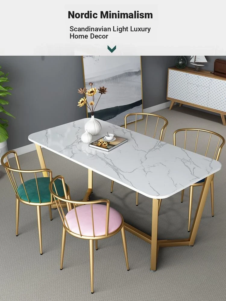 Nordic Ins Style Marble Dining Table and Chair Set - Rectangular Minimalist Design for Small Spaces, Perfect for Home Dining