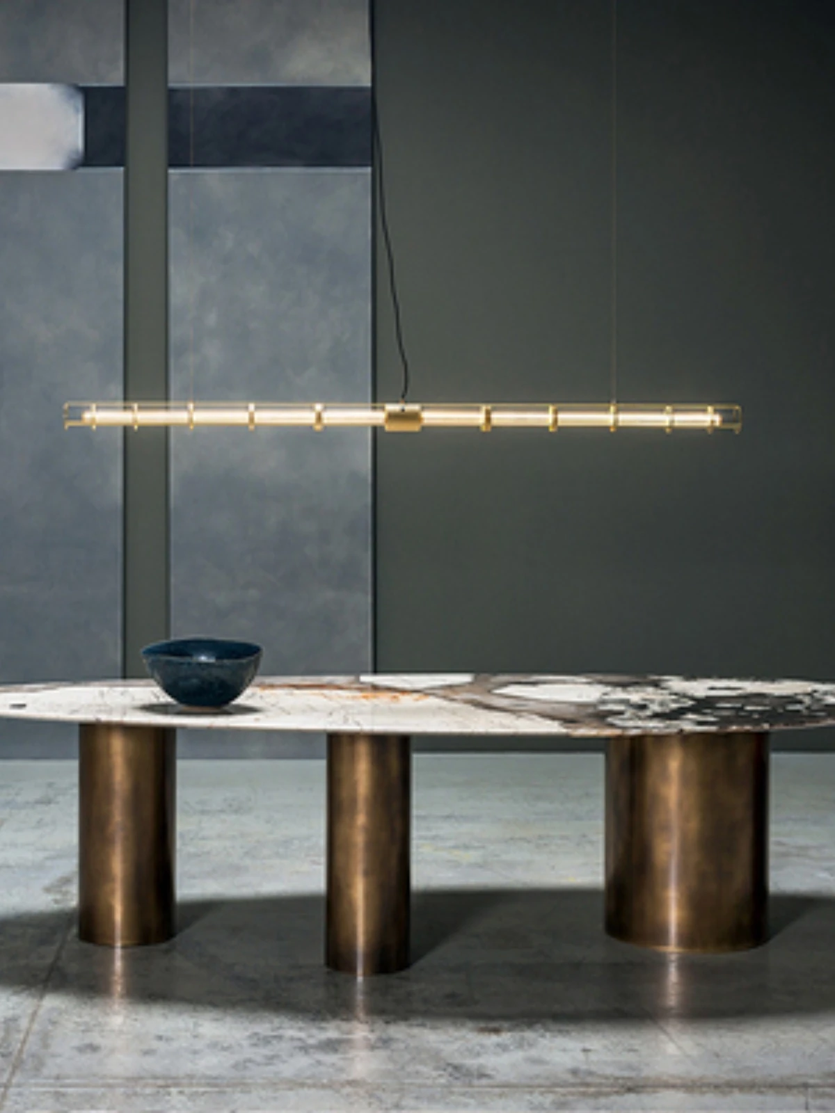 Luxury Natural Marble Dining Table - Elegant Blue Gold Long Table for Villas and Spacious Modern Homes - Minimalist Design for Sophisticated Dining Experiences