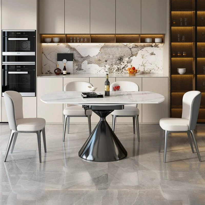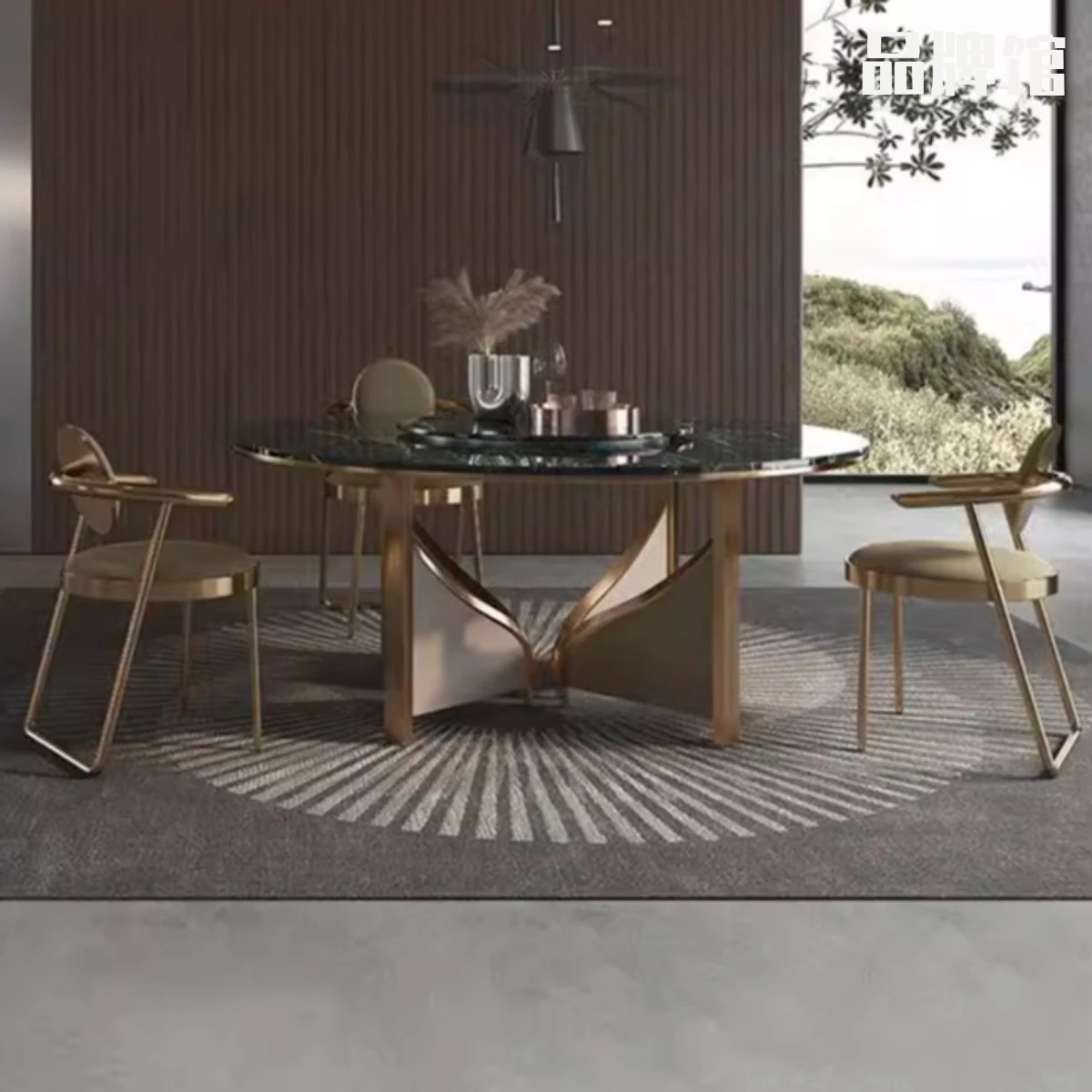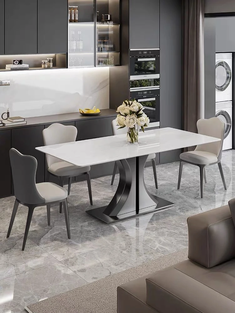 Elegant Italian Marble Rectangular Dining Table Set with Designer Chairs - High-End Rock Plate and Minimalist Stainless Steel Round Table for Luxurious Dining Experience