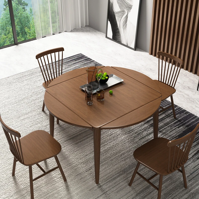 Transformable Solid Wood Folding Dining Table - Square to Round, Space-Saving Design for Small Homes, Multi-Functional Expandable Table for Family Meals