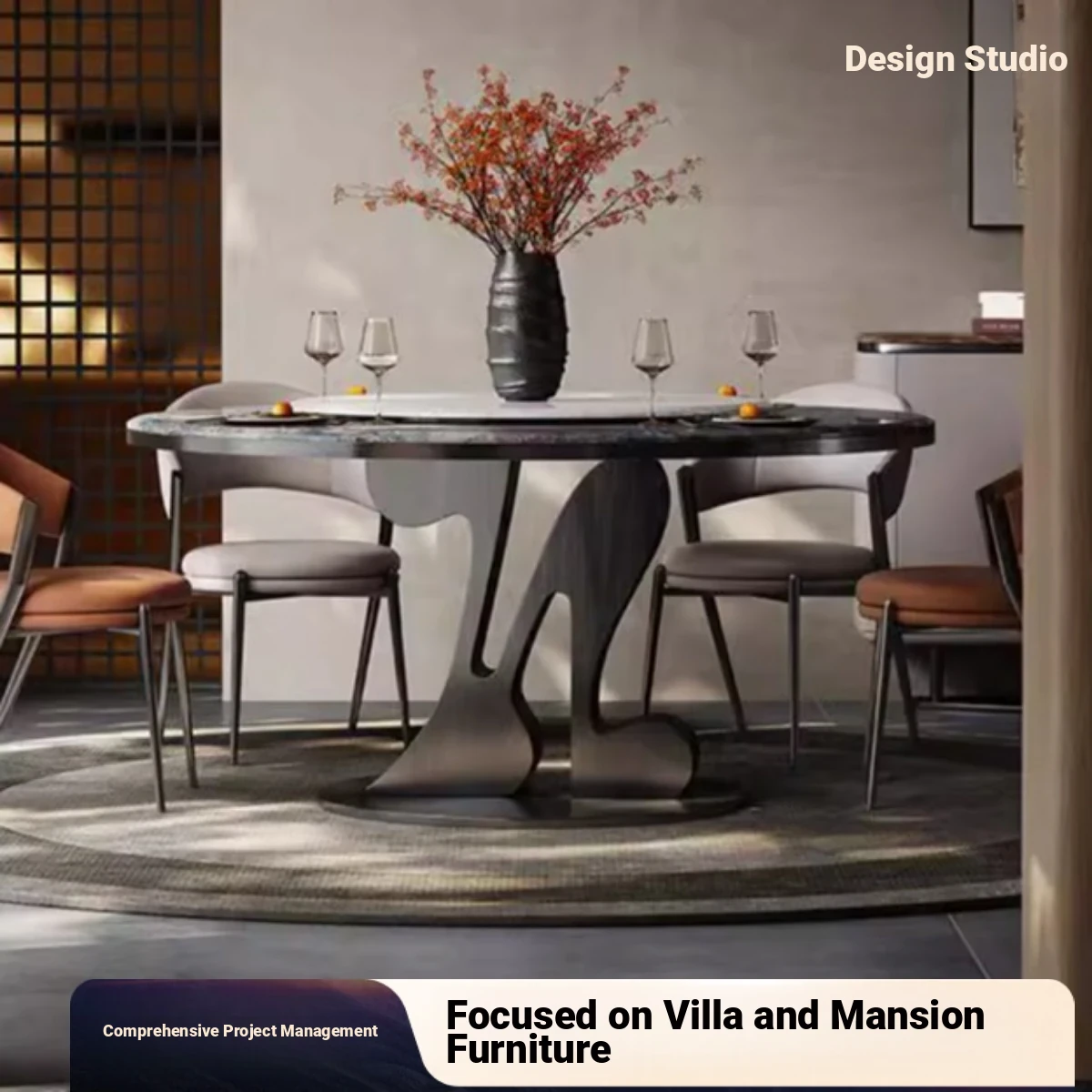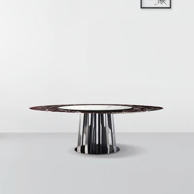 Imported Brazilian Natural Luxury Stone from Foshan, Guangdong - Designer High-End Villa Dining Table for Home Use, Oval Shape, Exquisite Craftsmanship.