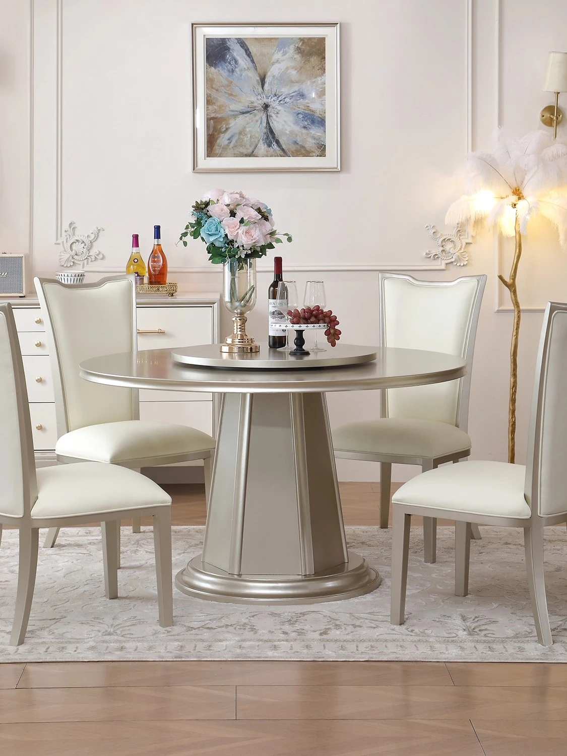 French Elegant 1.5m Marble Round Dining Table - Luxury Restaurant & Home Use High-End Artistic Rotating Dining Table