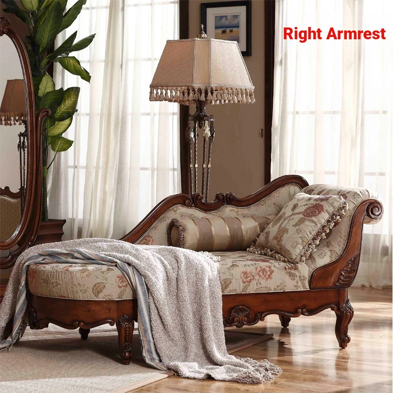 American Style Solid Wood Chaise Lounge Sofa - Elegant Fabric for Living Room, Bedroom, or Balcony - Luxurious and Comfortable Relaxation Chair