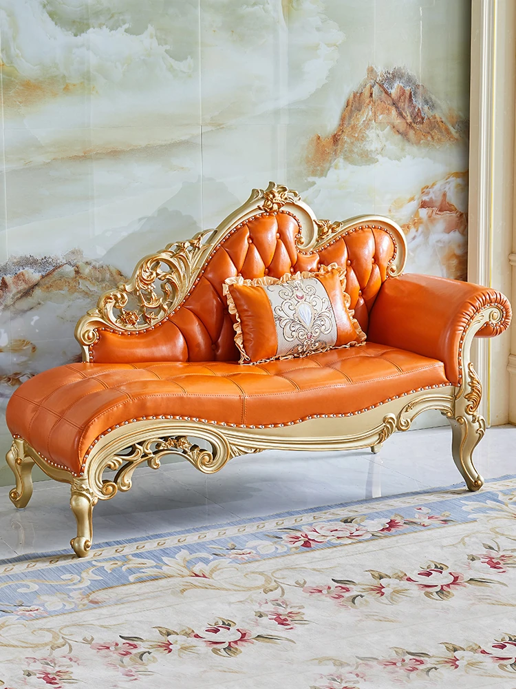 European-style Leather Chaise Lounge - Elegant Single Sofa for Living Room, Solid Wood Throne Chair for Bedroom, Relaxing Lazy Chair for Balcony
