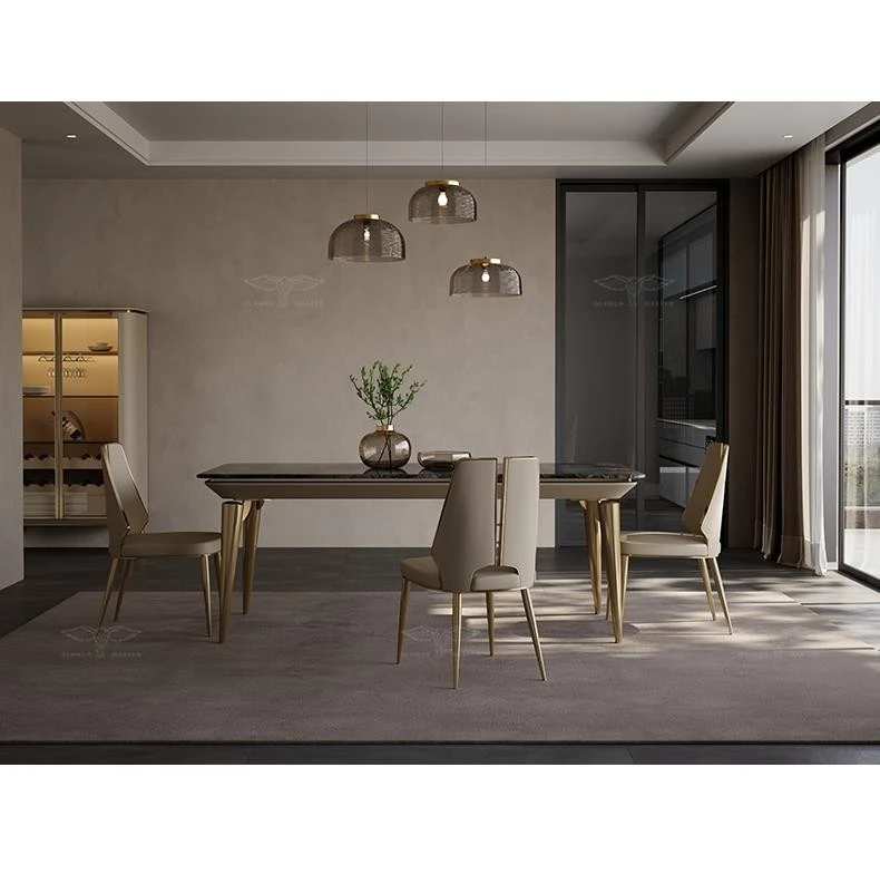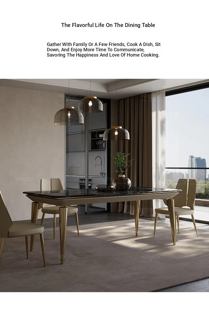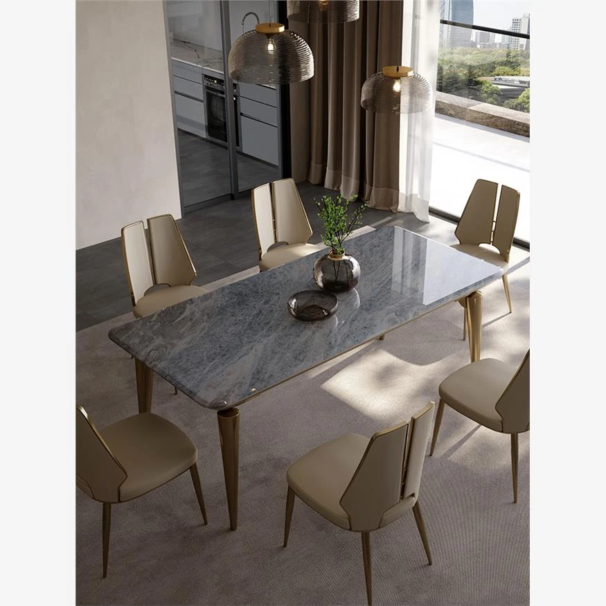 Dining table/70.87in + H132 ultra-fiber leather dining chair * 6/Xiangxuemei natural stone/champagne gold