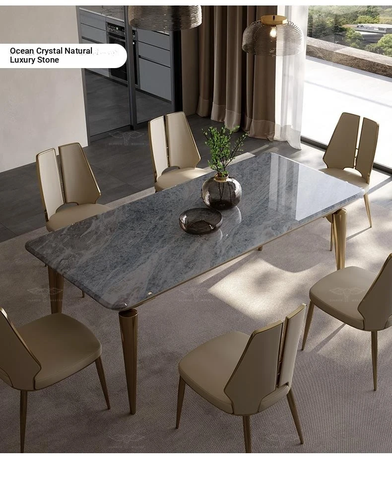 Dining table/70.87in + H132 ultra-fiber leather dining chair * 6/Ocean Crystal natural luxury stone/champagne gold