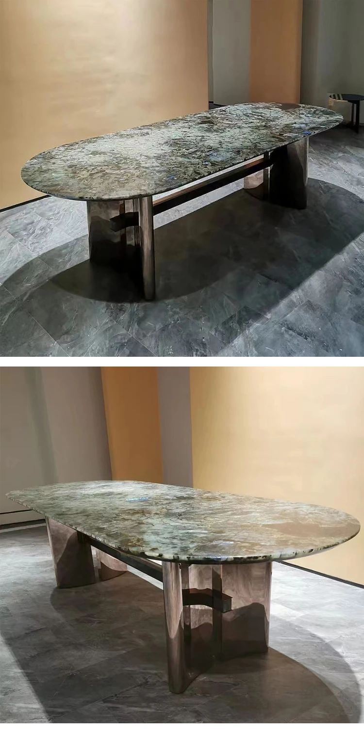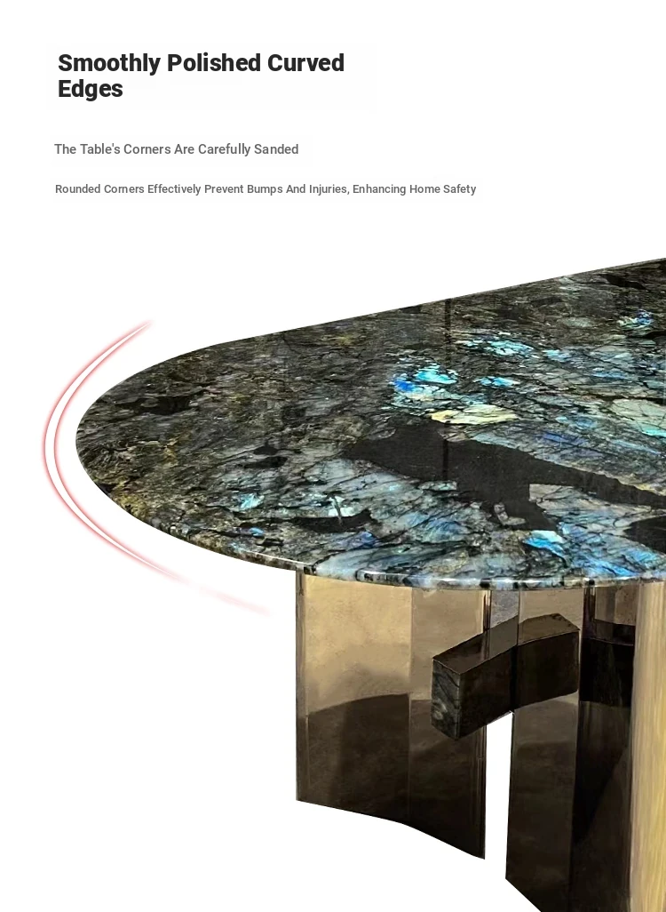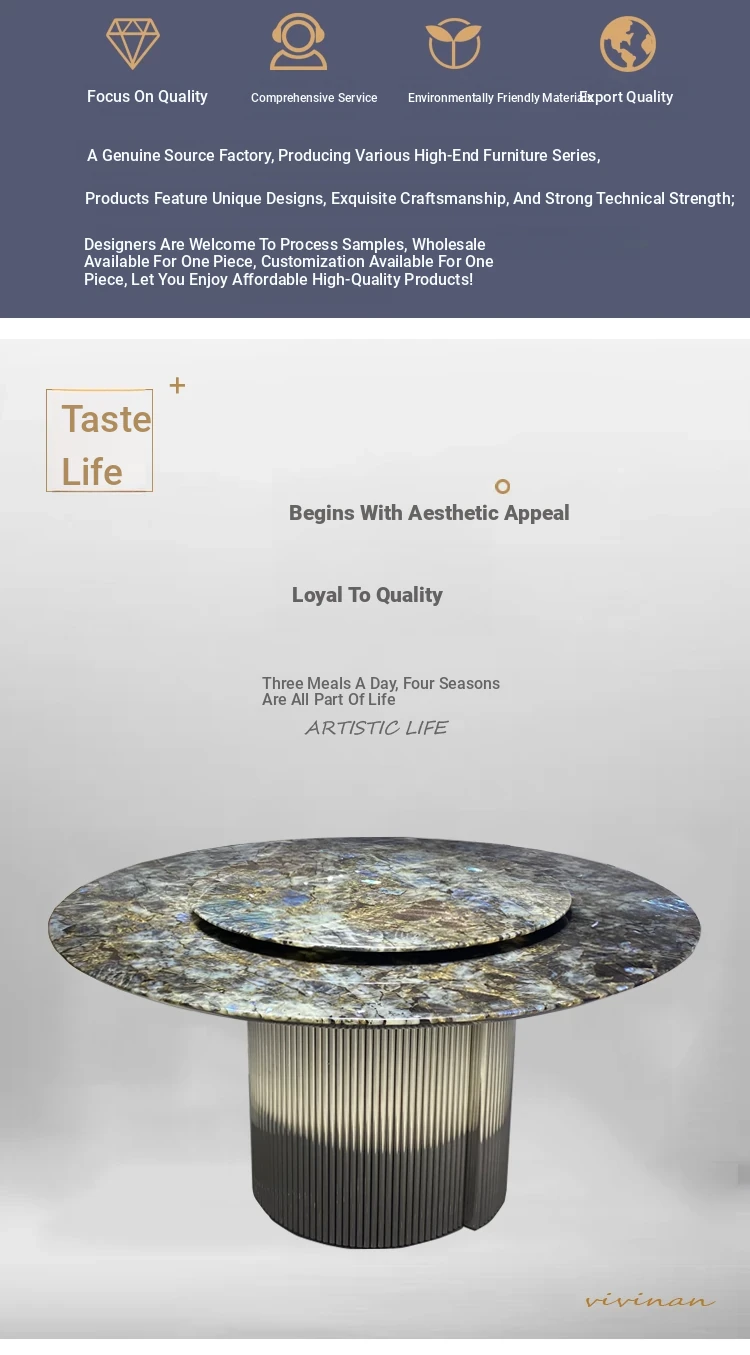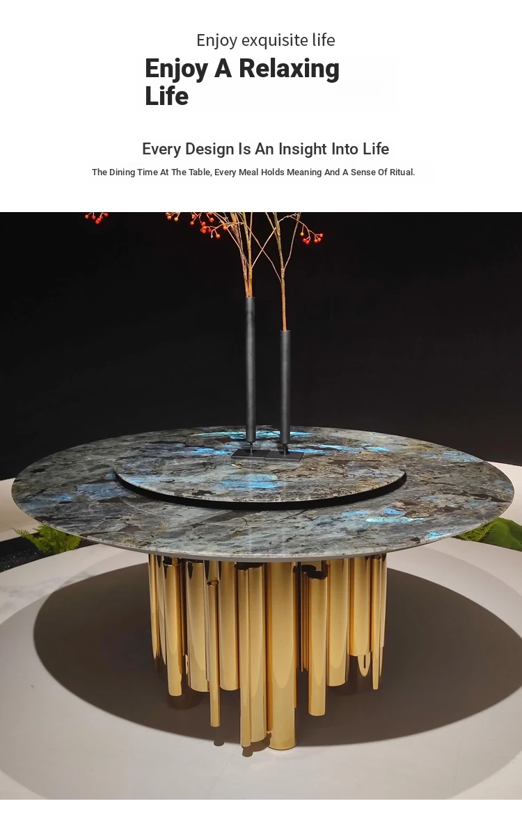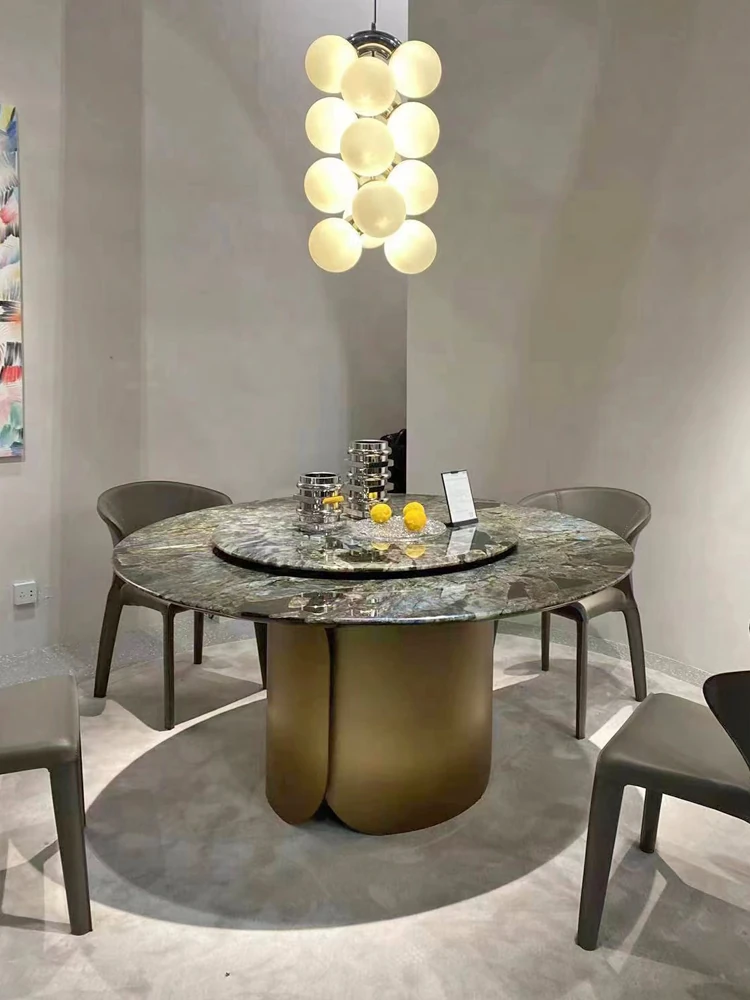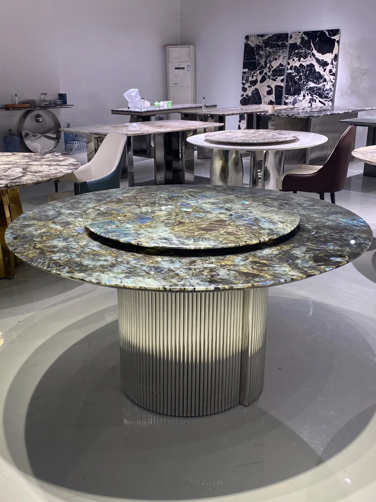 2025 New Luxury Round Dining Table in Blue Jadeite: Elegant Stone Design for Upscale Villas and Spacious Living Spaces