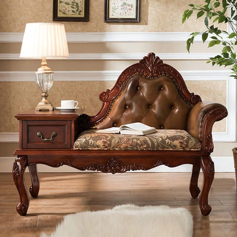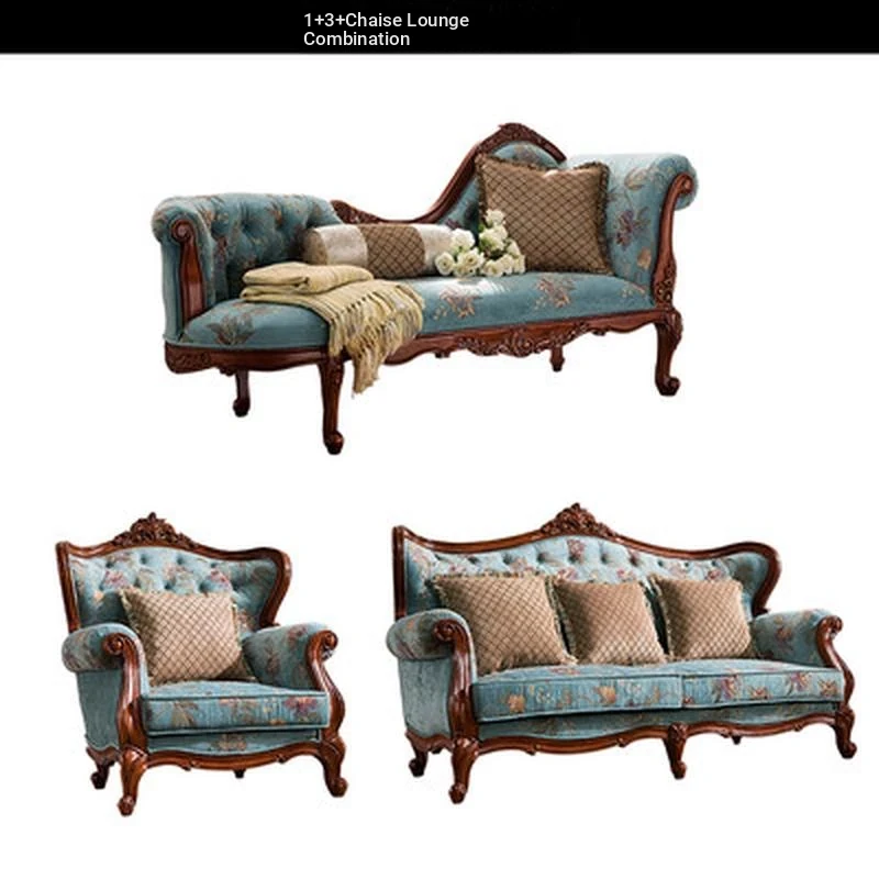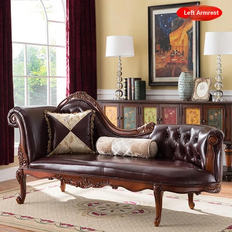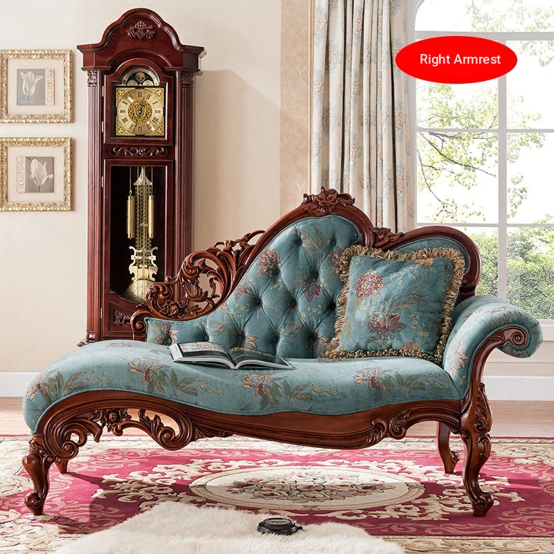 American Style Solid Wood Chaise Lounge Sofa - Elegant Fabric for Living Room, Bedroom, or Balcony - Luxurious and Comfortable Relaxation Chair