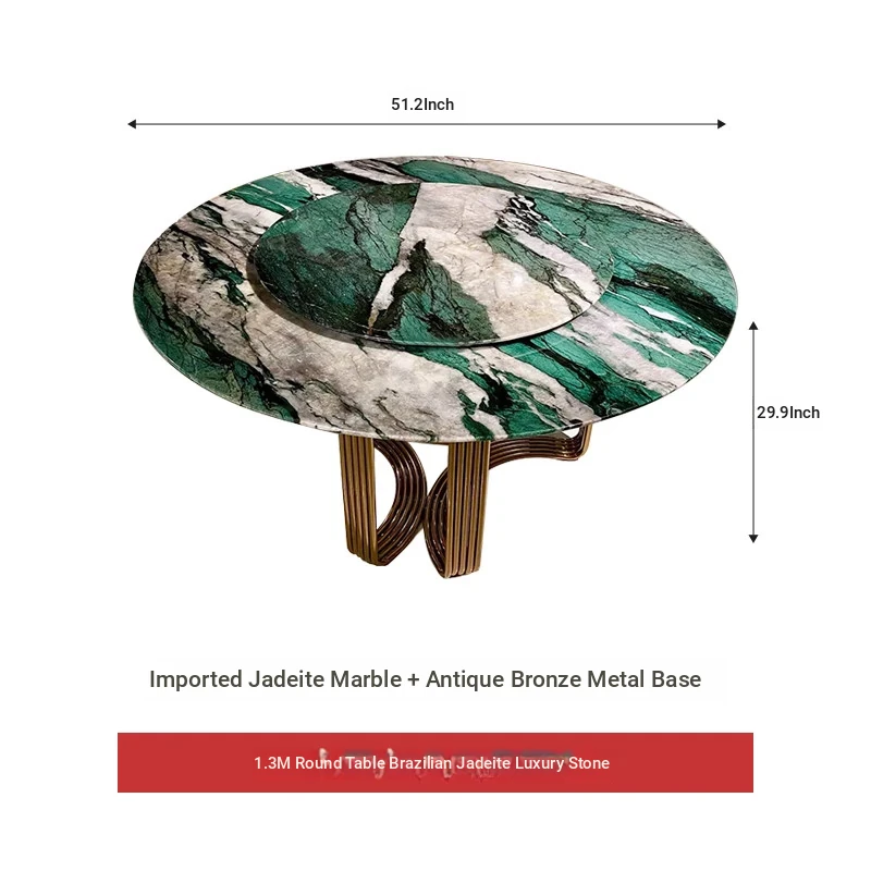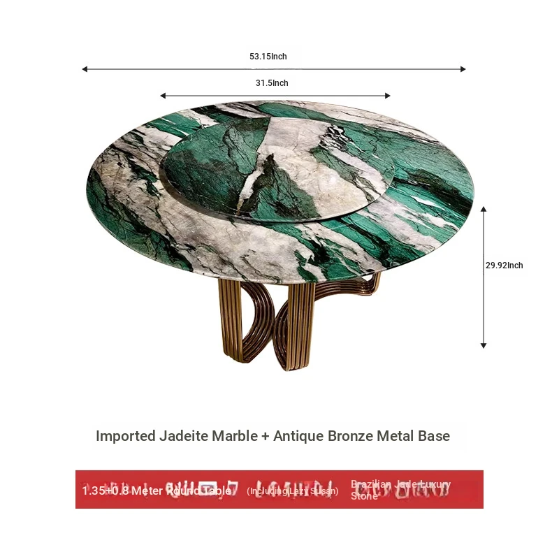 1.35+31.50 in Round Table (Including Turntable) Patek Emerald Luxury Stone Dining Table [Pure Natural Stone Fake One to Ten]]