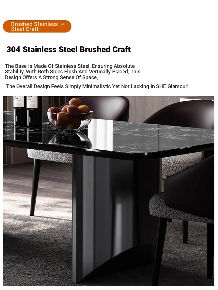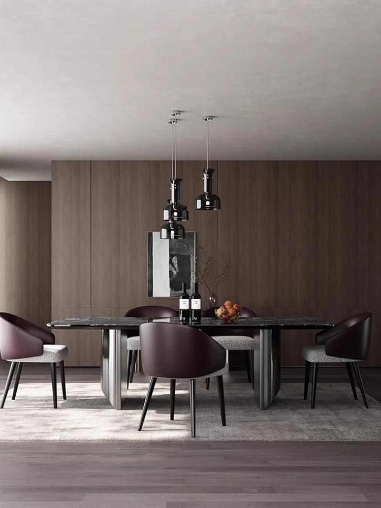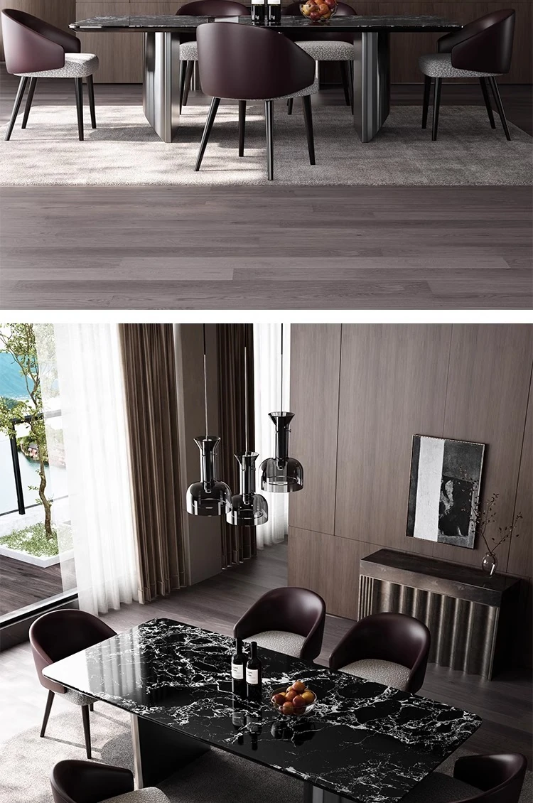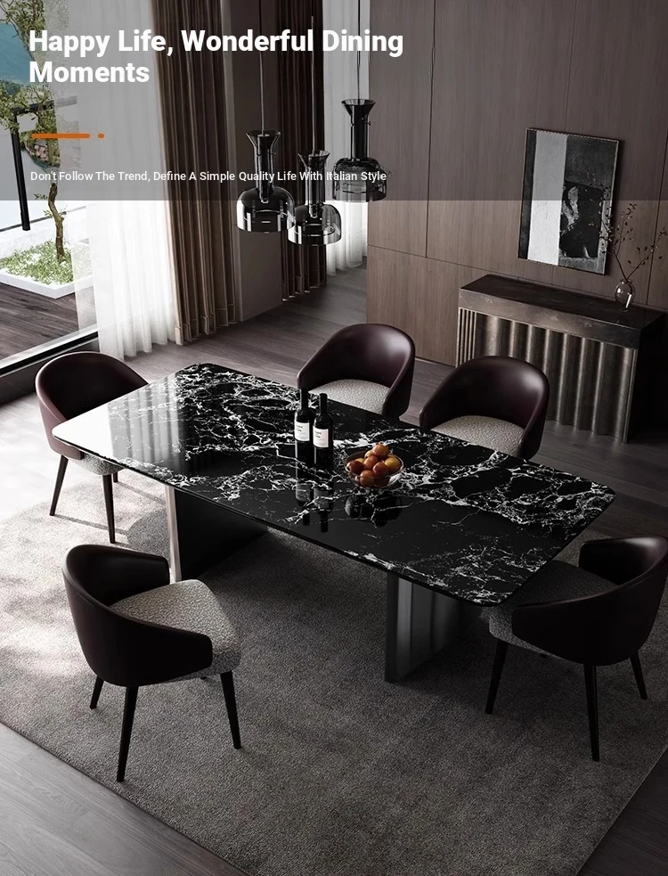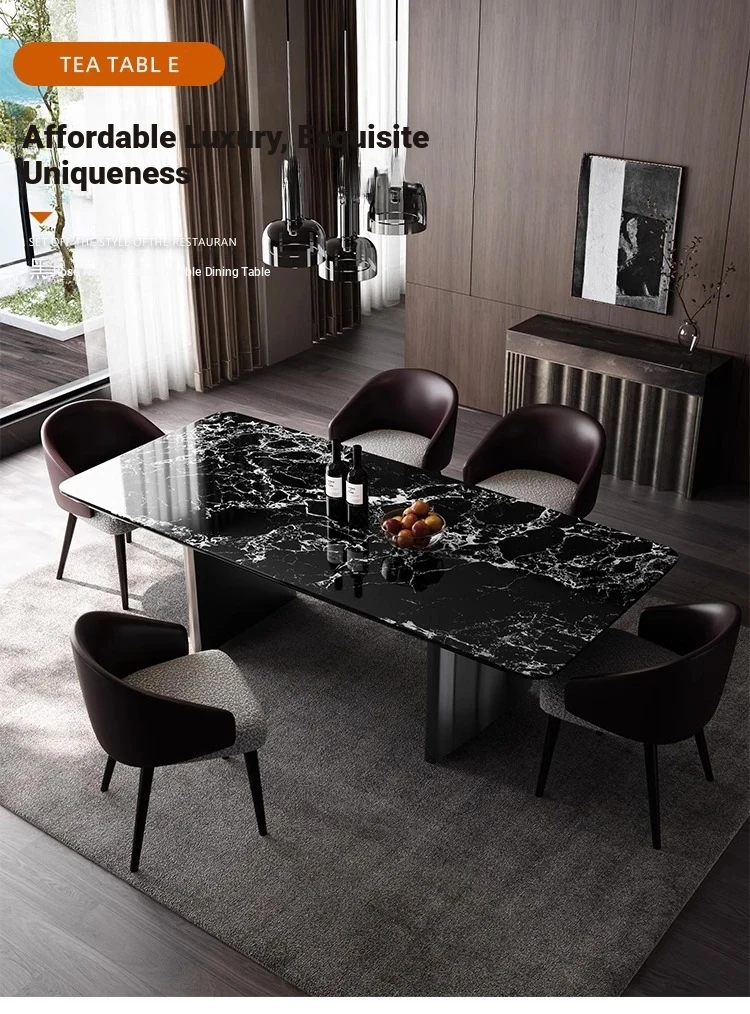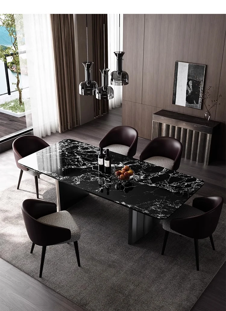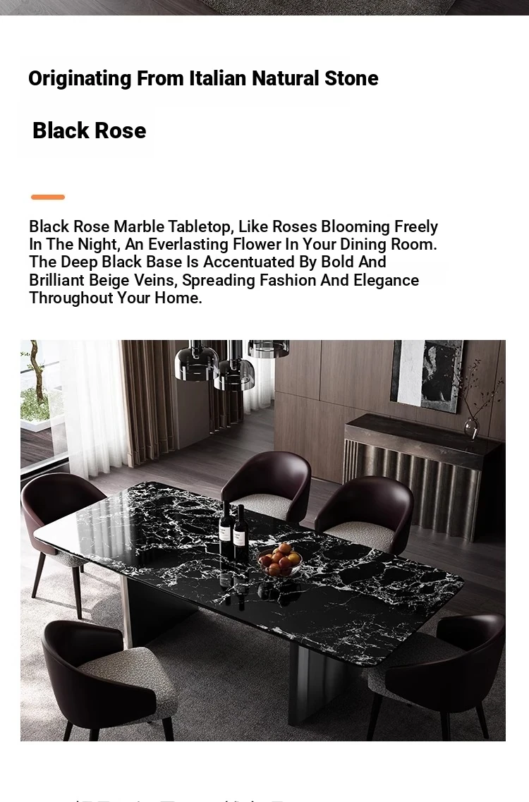 Black Rose Natural Marble Luxury Rectangular Dining Table - Imported High-End Designer Table for Villas and Homes, Perfect for Elegant Dining Experiences.