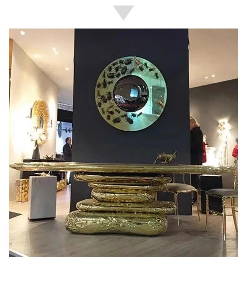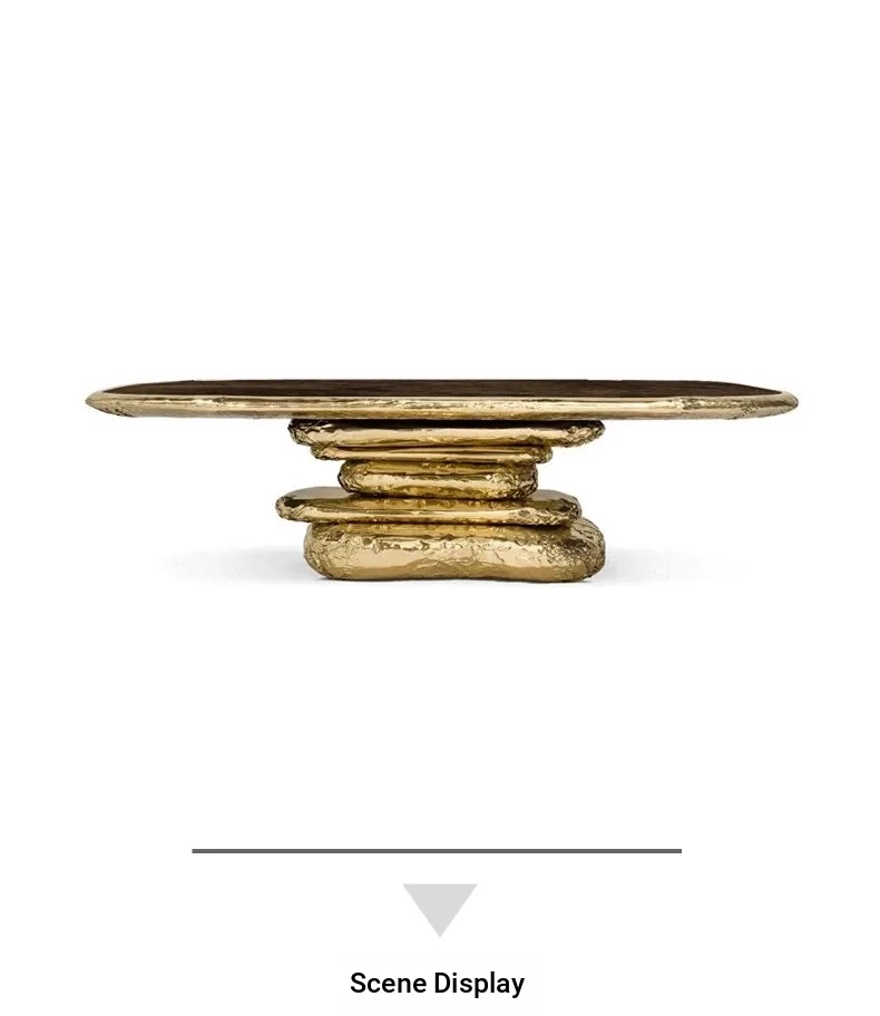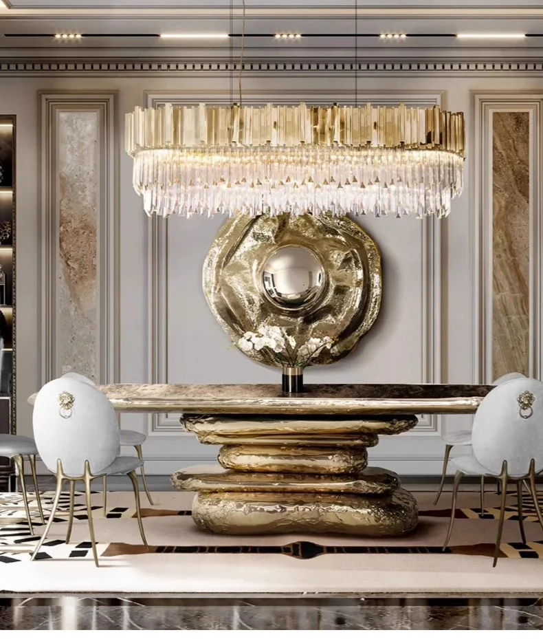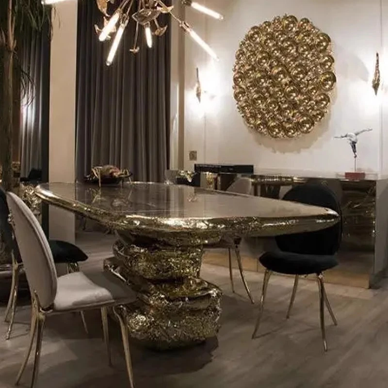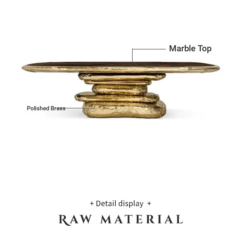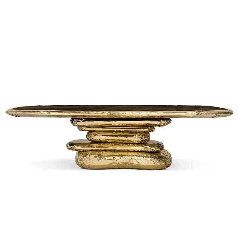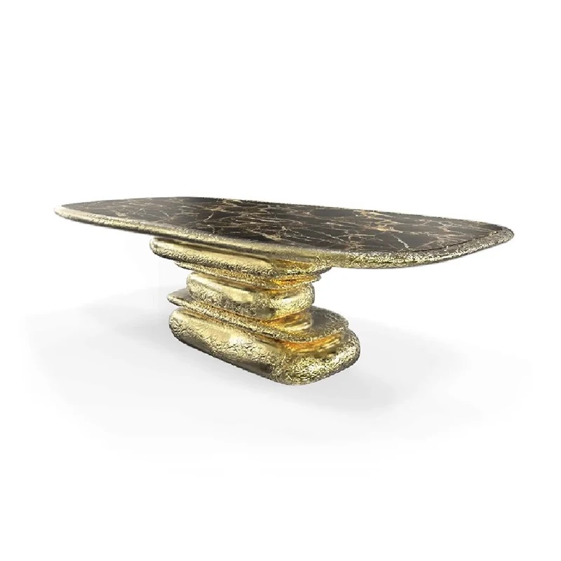 Bocado Lobo Brass Strip Long Dining Table with Portuguese Marble Top - Elegant Luxury for Villas and High-End Homes