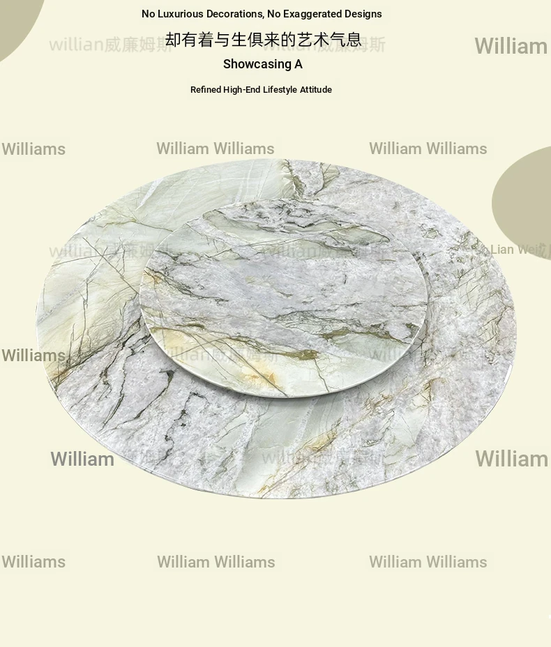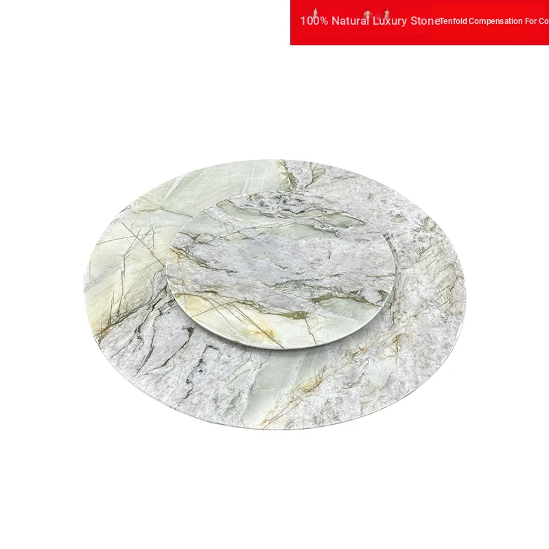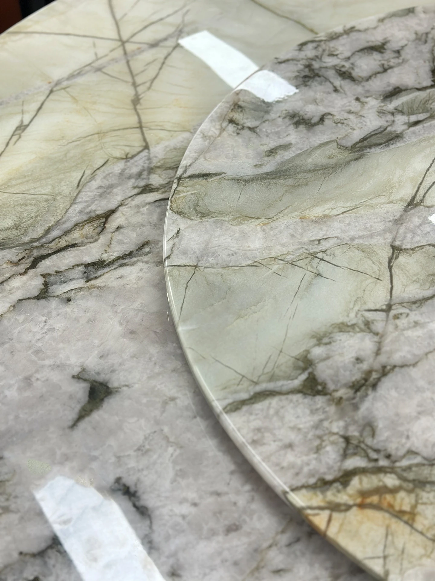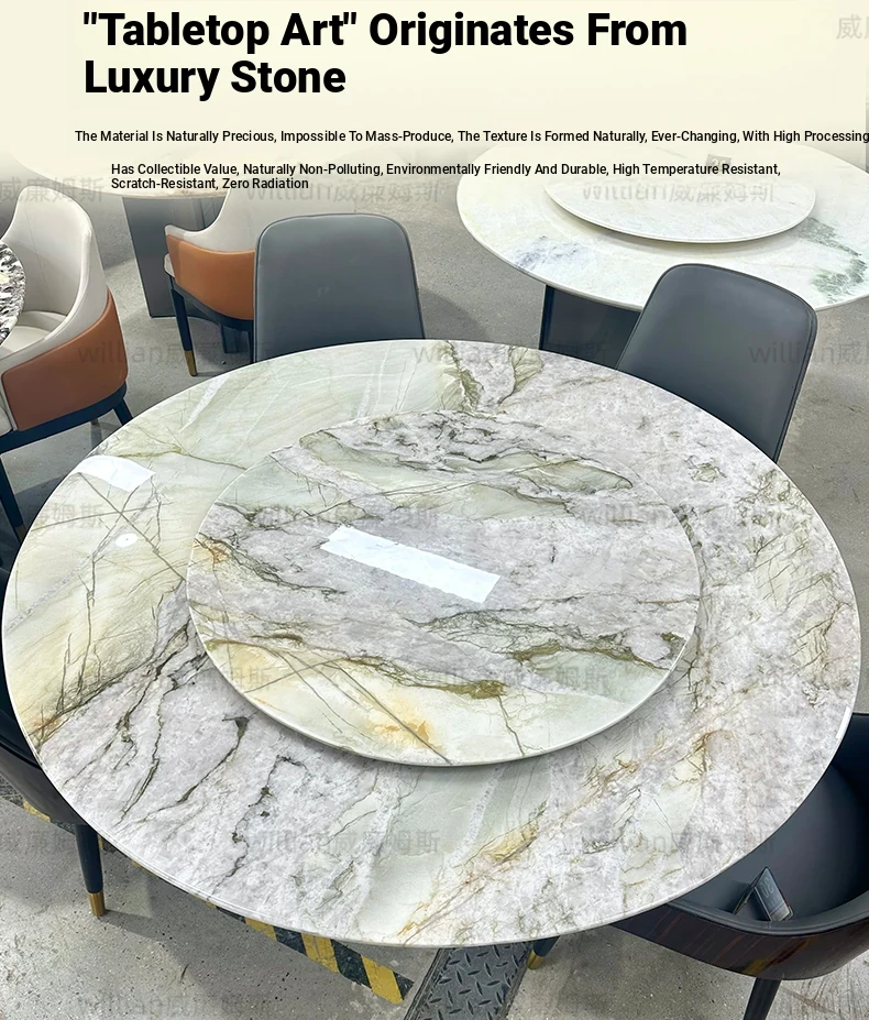 Green bottom Pandora luxury stone dining table * turntable + dining chair * 6