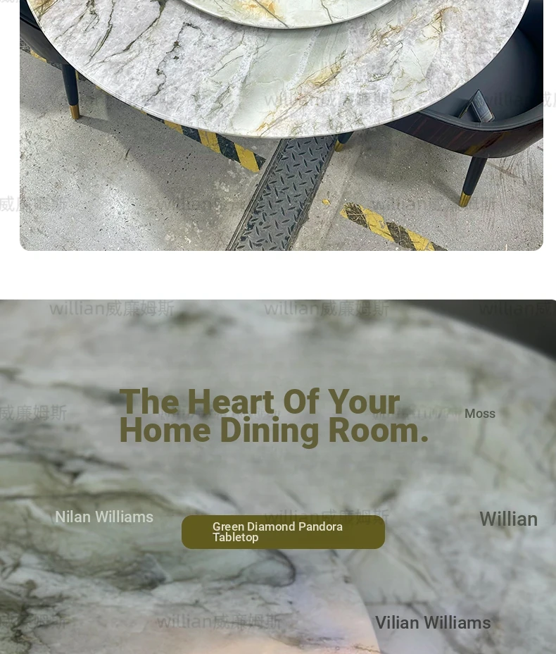 Green bottom Pandora luxury stone dining table + dining chair * 8