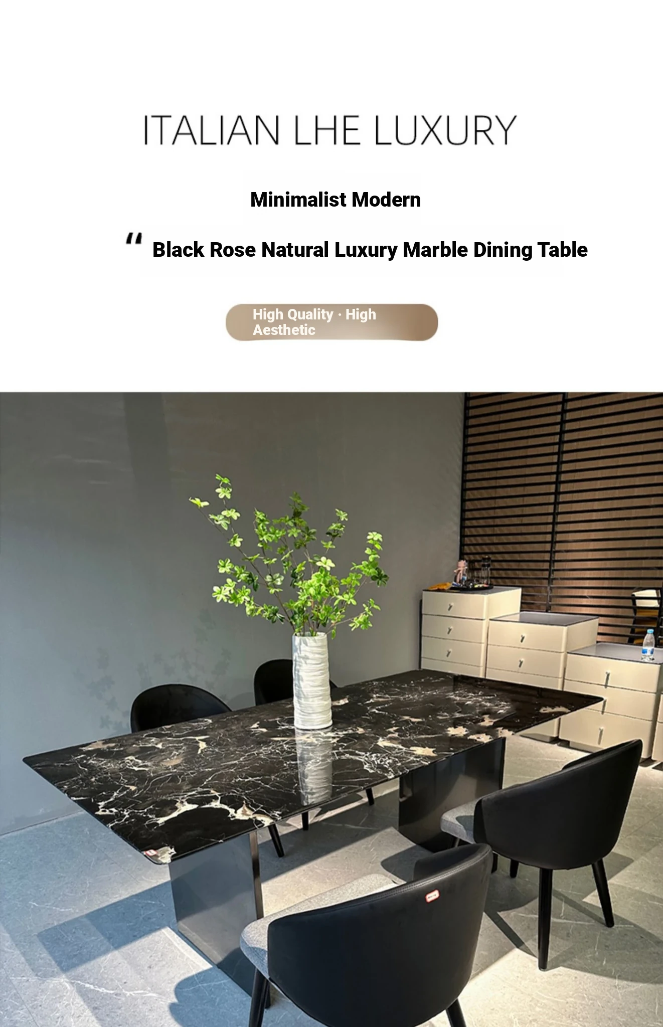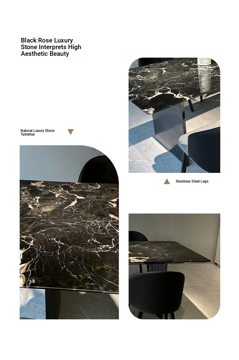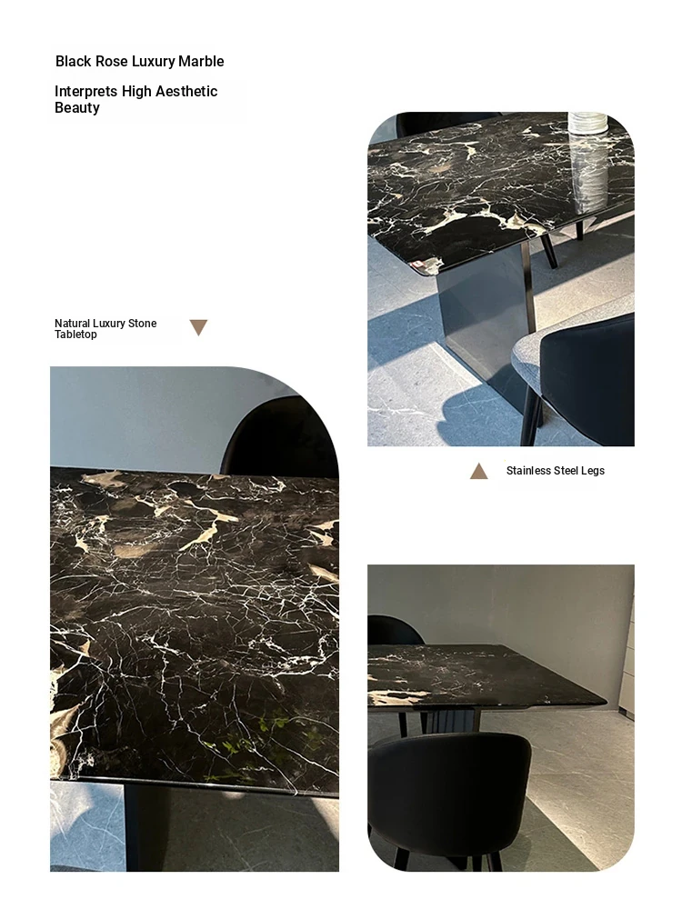 Bvlgari Black Luxury Stone Rectangular Dining Table - Modern Italian Minimalist Design for Home, Perfect for Stylish Living Rooms