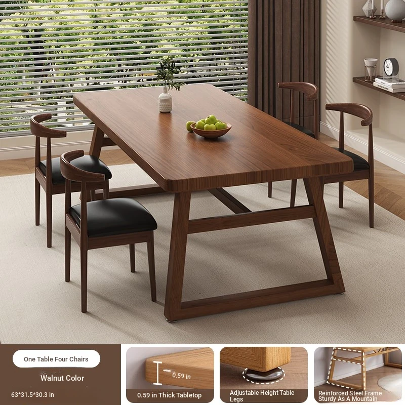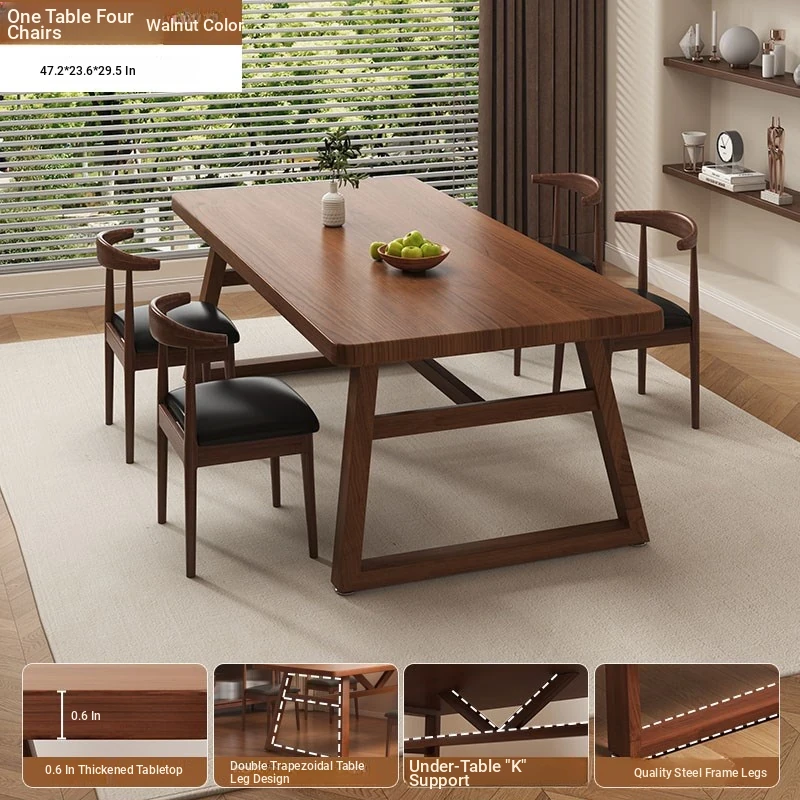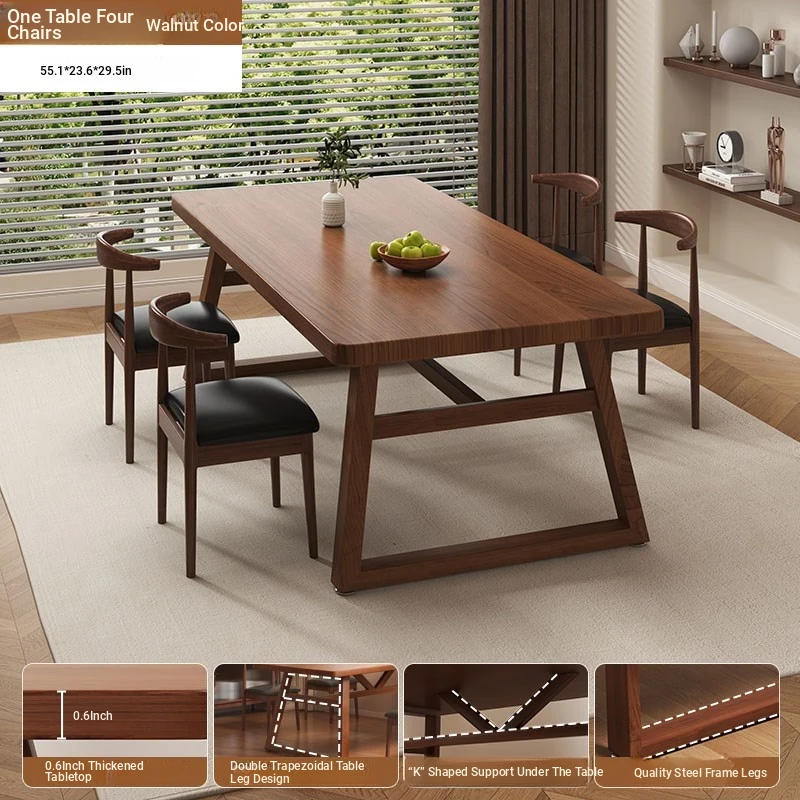 [One table and four chairs❤Hot sale] Spruce walnut color 160*60