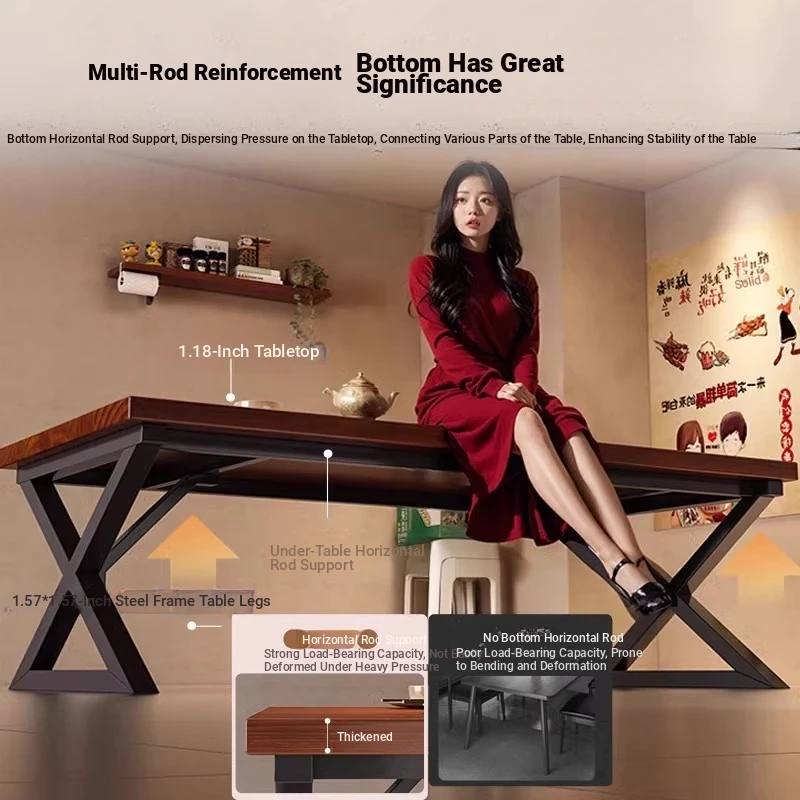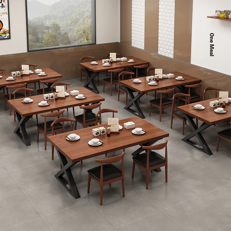 Commercial Snack Hot Pot Dining Table and Chair Set - D Combination, Perfect for Fast Food Restaurants, Milk Tea Shops, and Breakfast Cafes. Spacious Long Table for an Inviting Dining Experience!