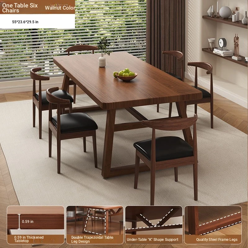 [One table and six chairs❤Hot sale] Spruce walnut color 160*60