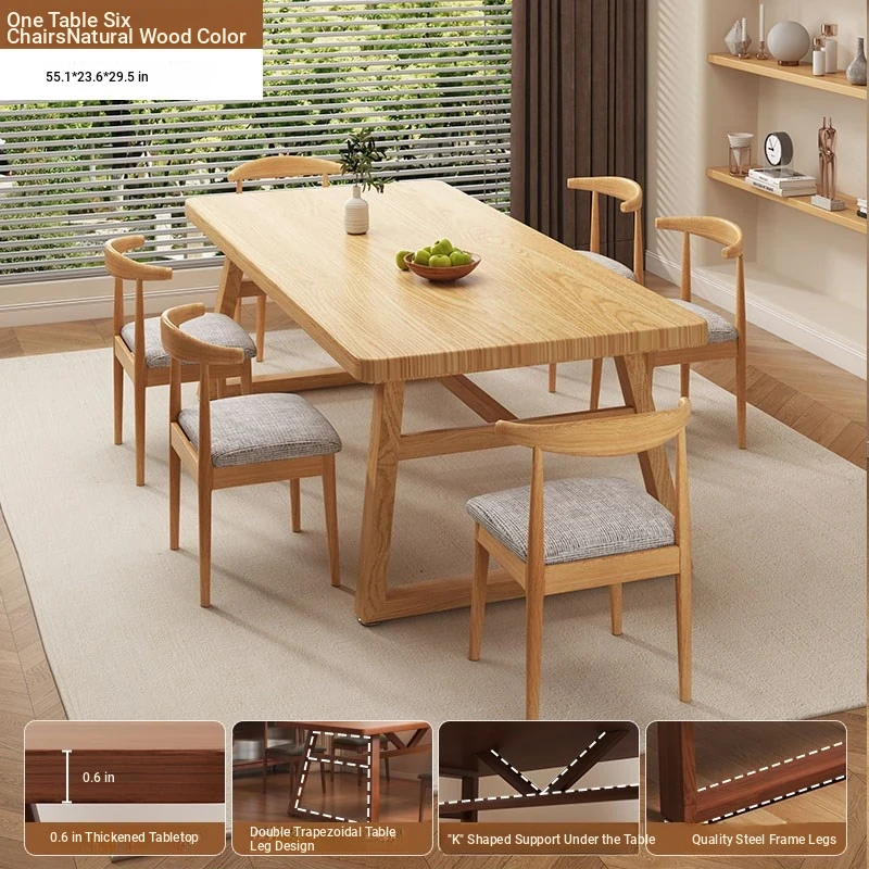 [One table and six chairs❤Economy] log color 140*60