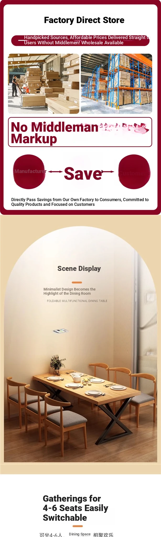 [One table and six chairs❤Economic money] log color 160*80