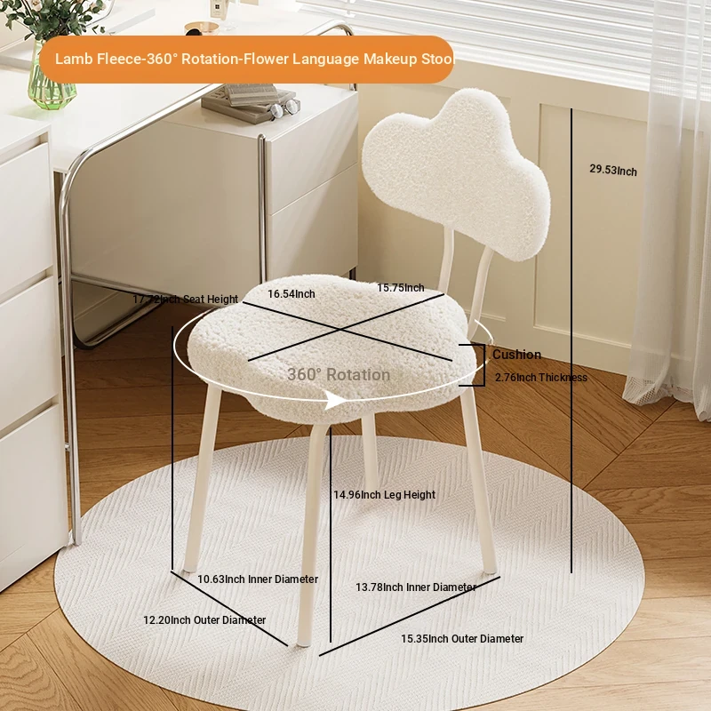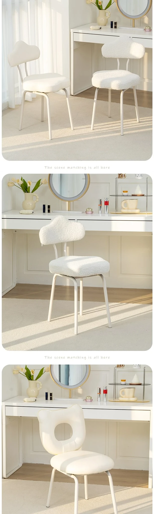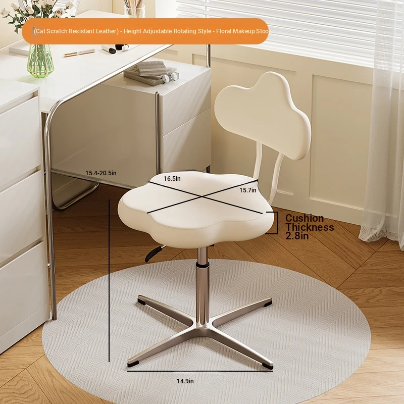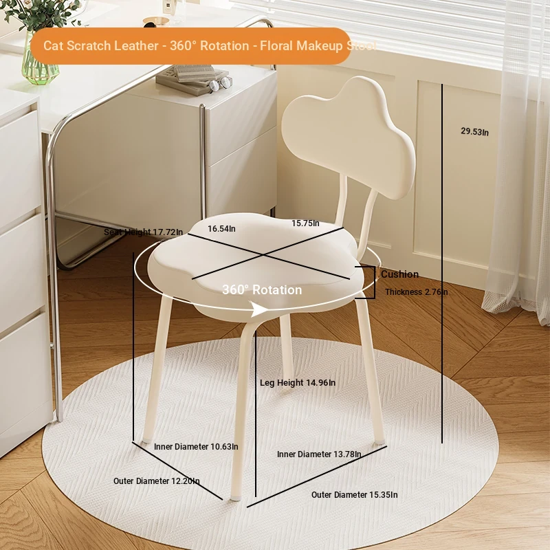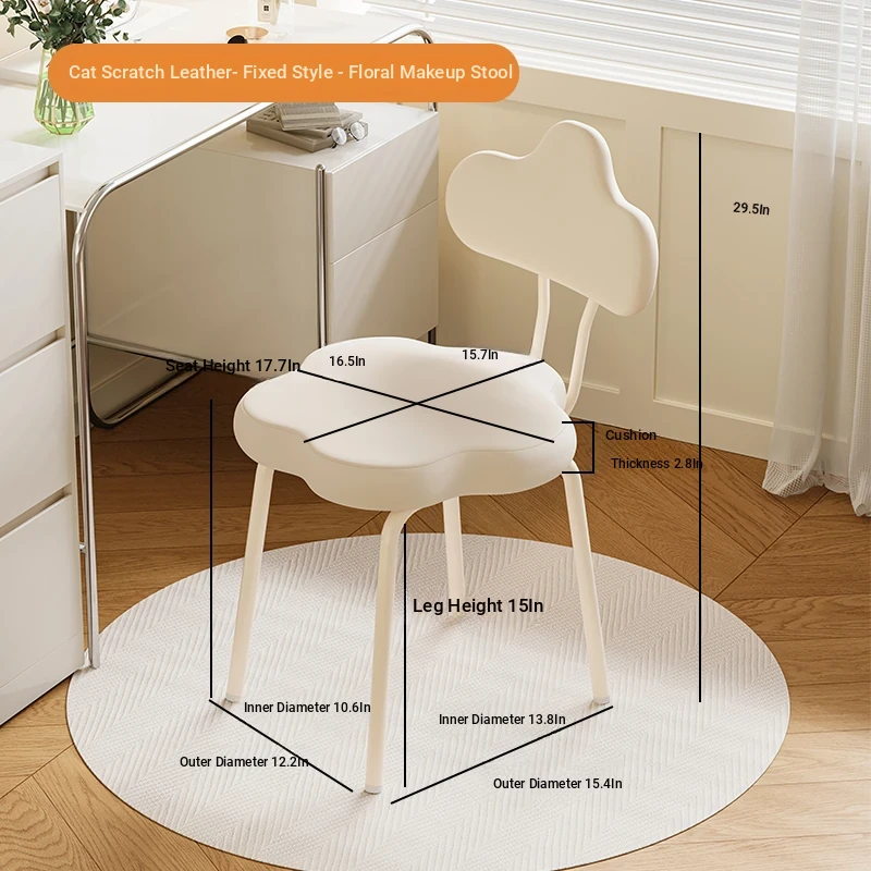 Cream White Cat Scratch Skin Fixed Flower Language Makeup Chair