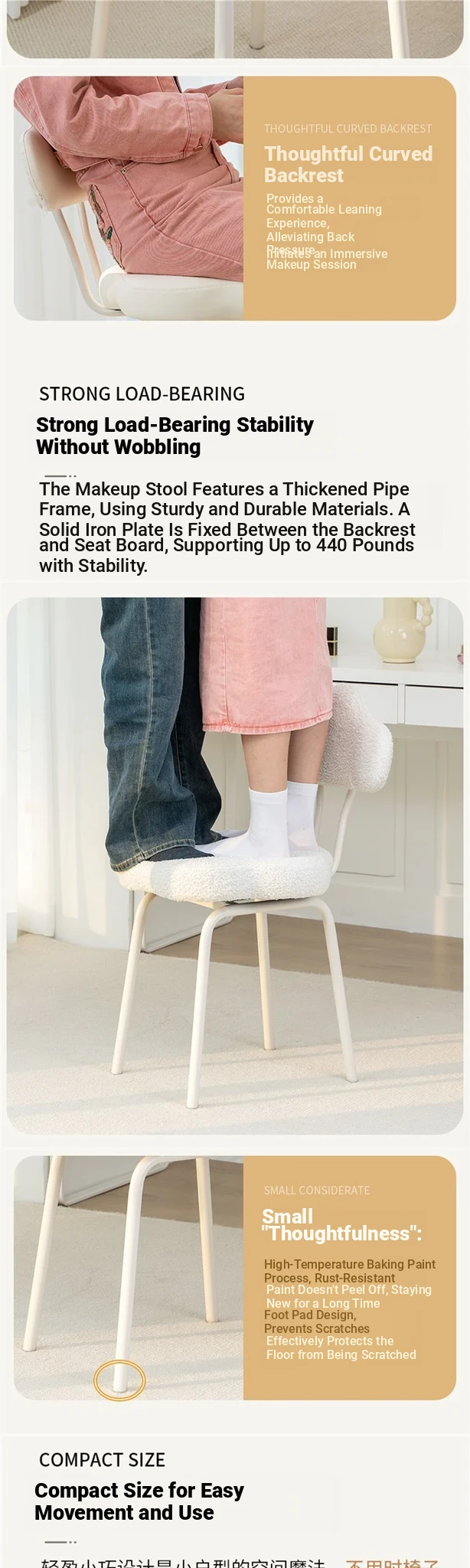 Creamy Stylish Makeup Stool 2023 - Chic Vanity Chair with Backrest for Women’s Bedrooms, Trendy and Elegant Design for Influencers