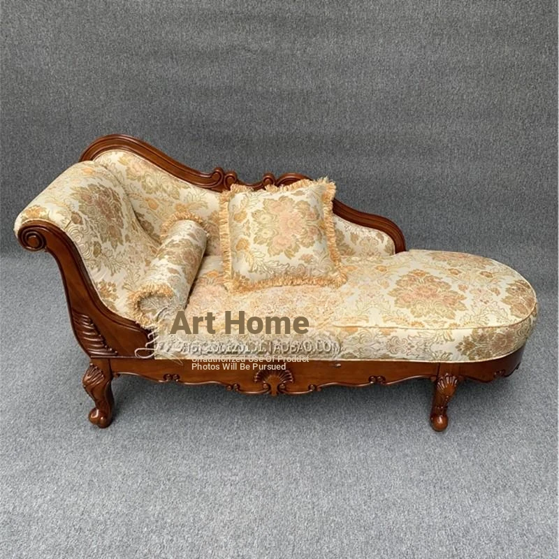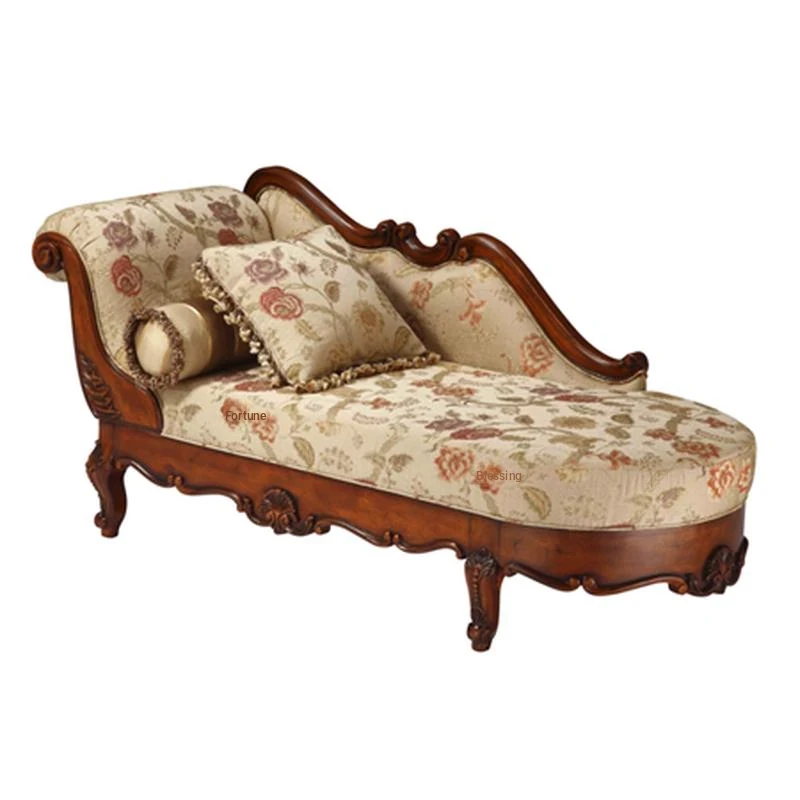 Elegant American Chaise Lounge - Upholstered Lazy Sofa for Bedroom & Living Room, Solid Wood European Design Daybed, Perfect for Relaxation