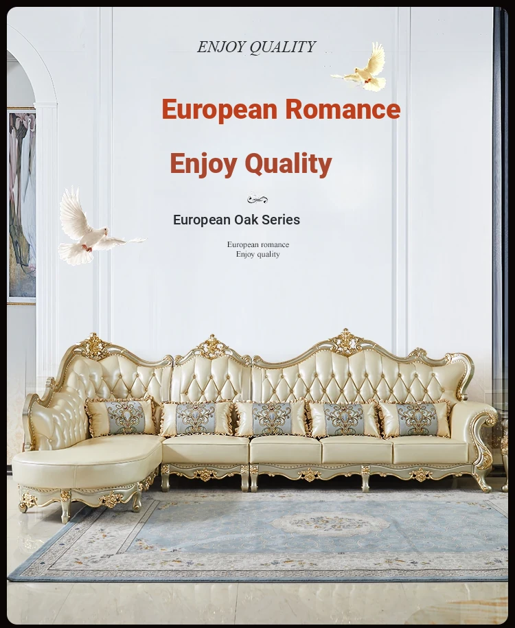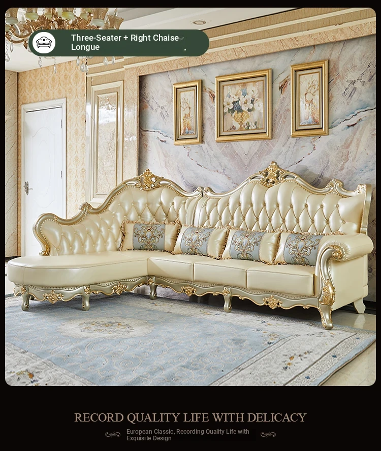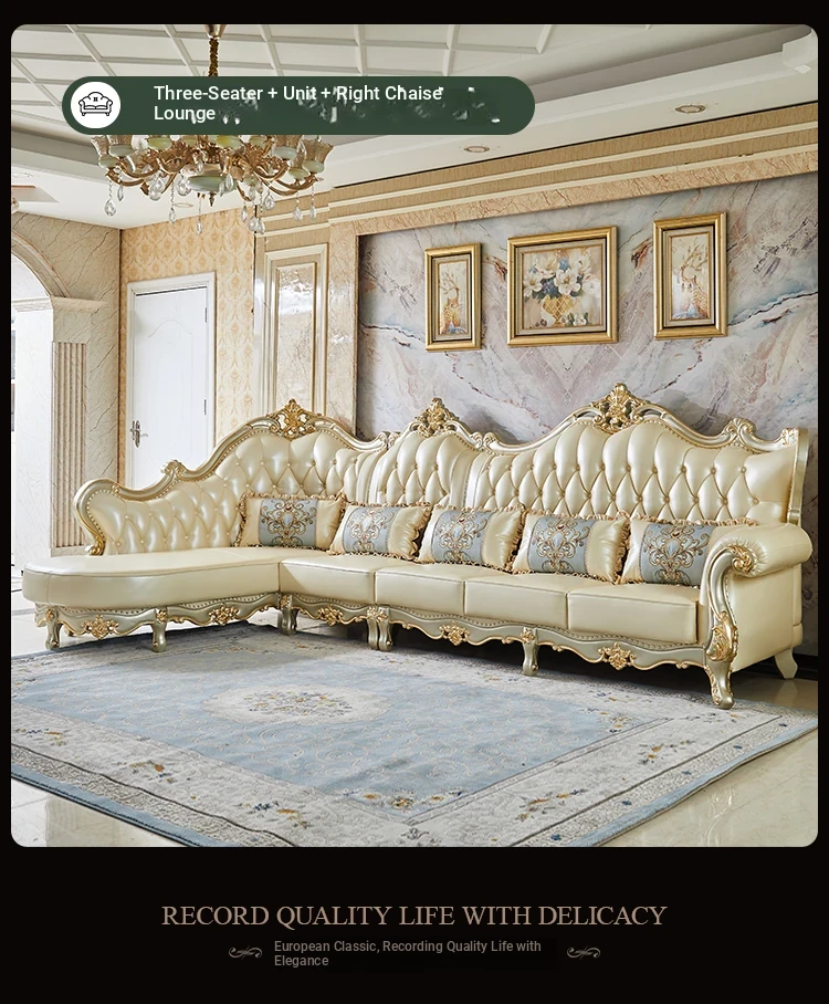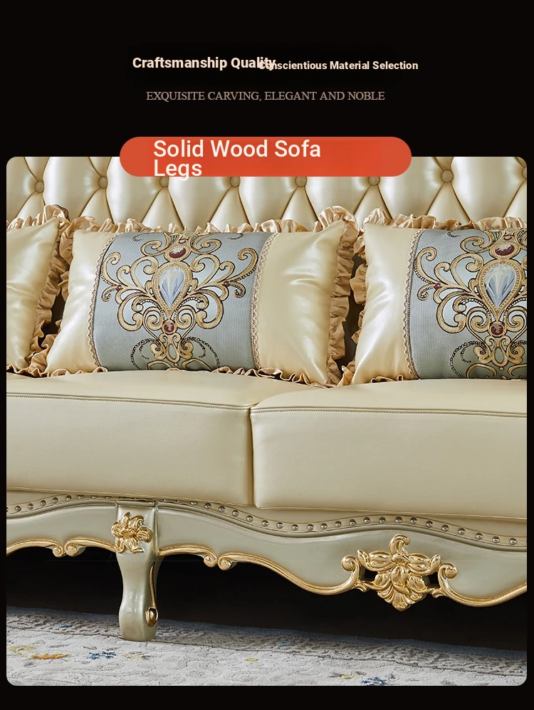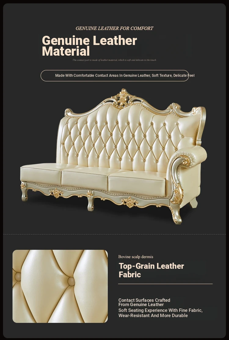 Elegant European Style Genuine Leather Sofa Set for Small Living Rooms - Luxurious and Chic Upholstered Corner Sofa for a Cozy and Stylish Home