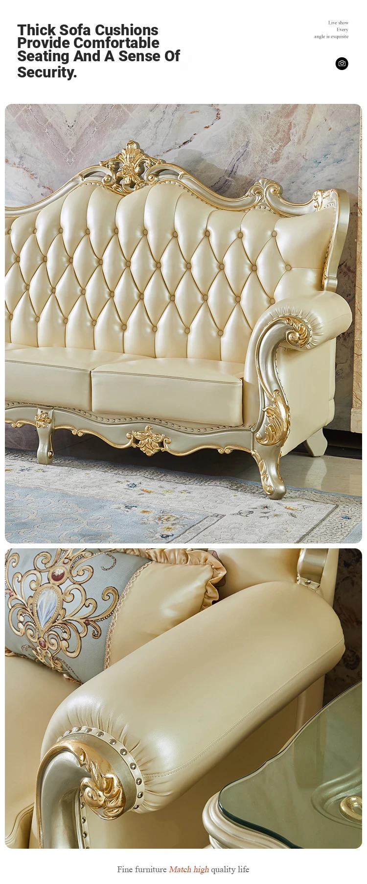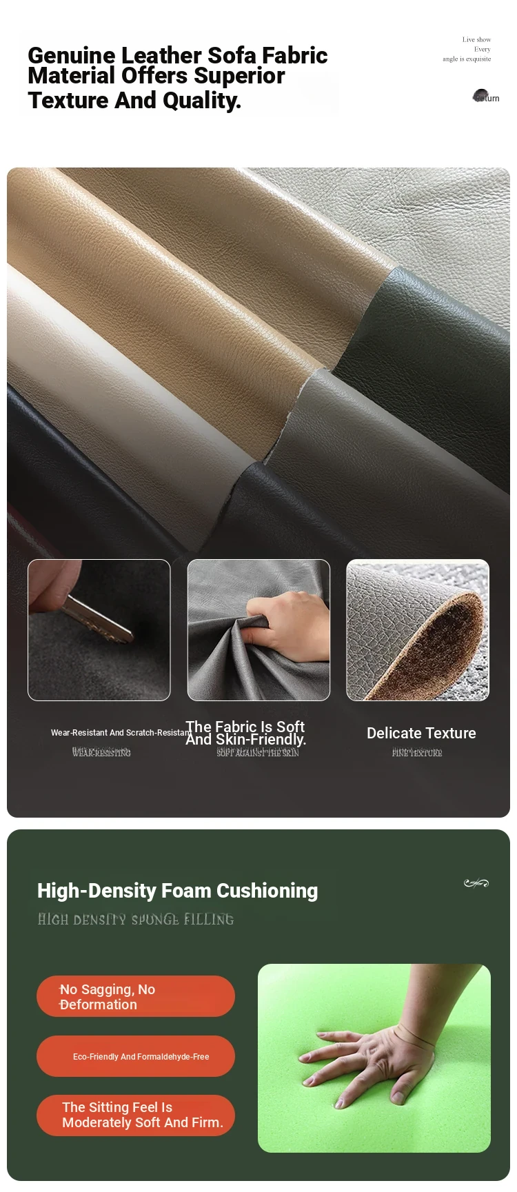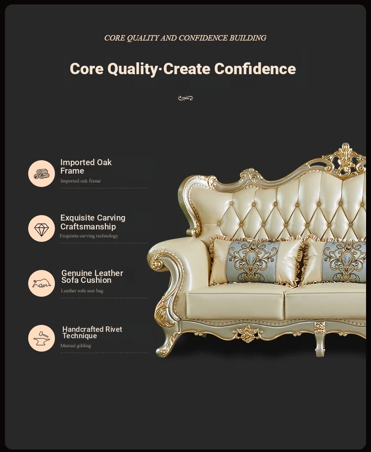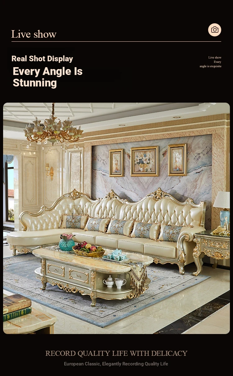 Elegant European Style Genuine Leather Sofa Set for Small Living Rooms - Luxurious and Chic Upholstered Corner Sofa for a Cozy and Stylish Home