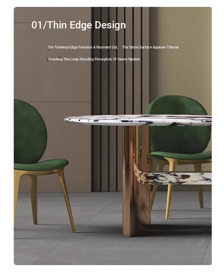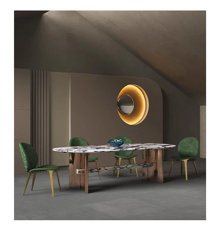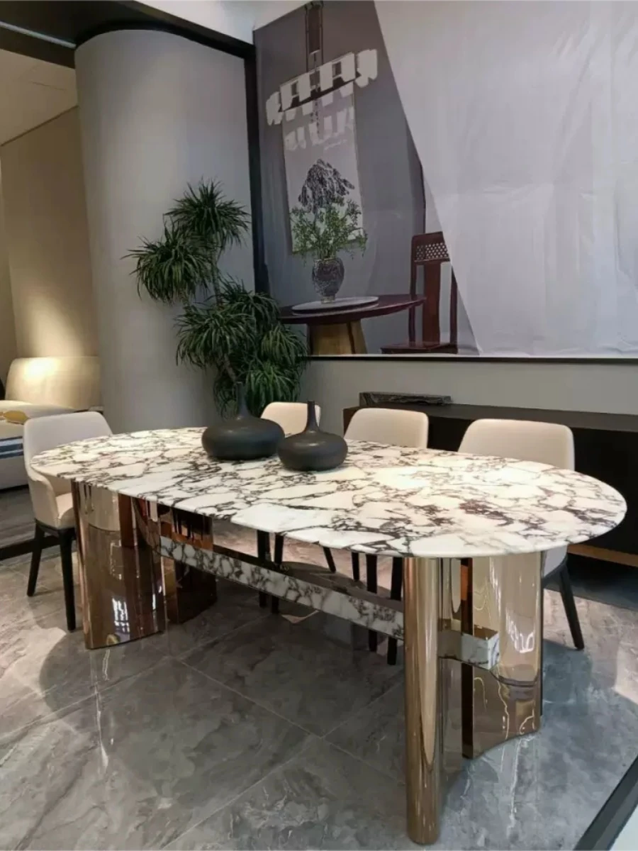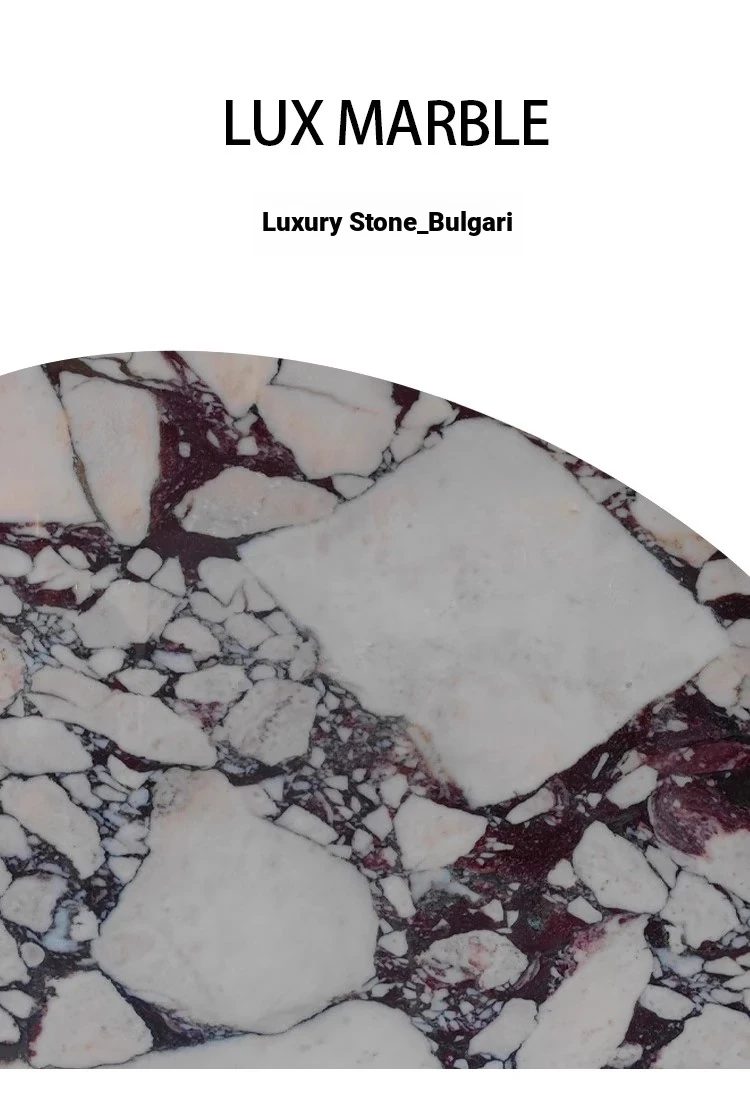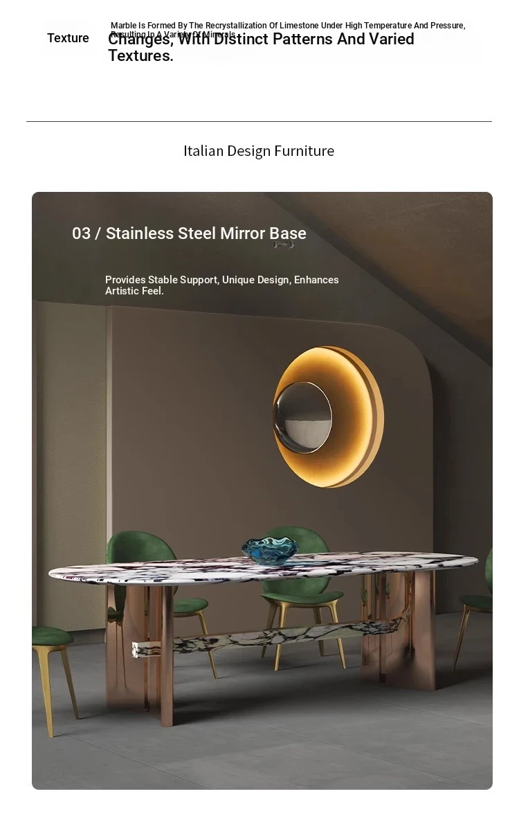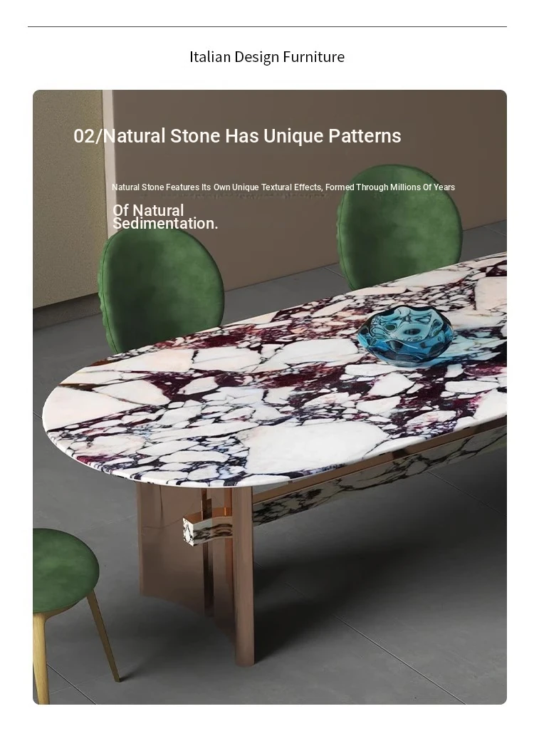 Elegant French Natural Marble Oval Dining Table - Designer Furniture for Villas and Luxury Homes - Imported Bulgari Purple Luxe Stone Dining Table