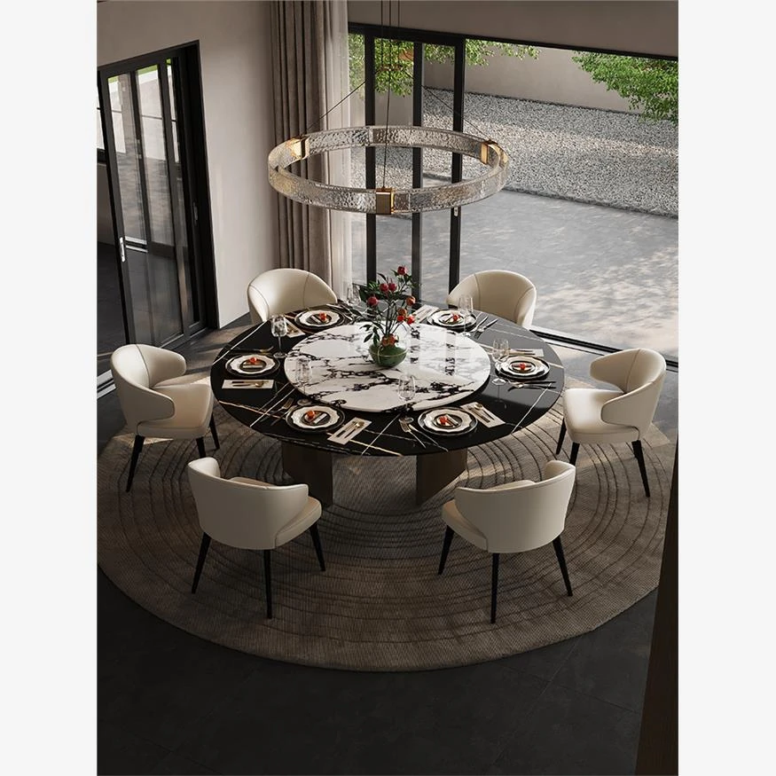 Elegant Italian Round Dining Table for 2024 - Luxurious Soft Decoration Solution for Your Living Room, Perfect for Modern Dining Spaces with High-End Aesthetic and Sophisticated Stone Finish.