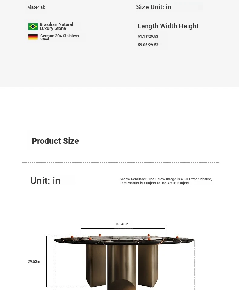 Designer -59.06in Dining Table +35.43in Turntable [Brazil Import Natural Luxury Stone]]