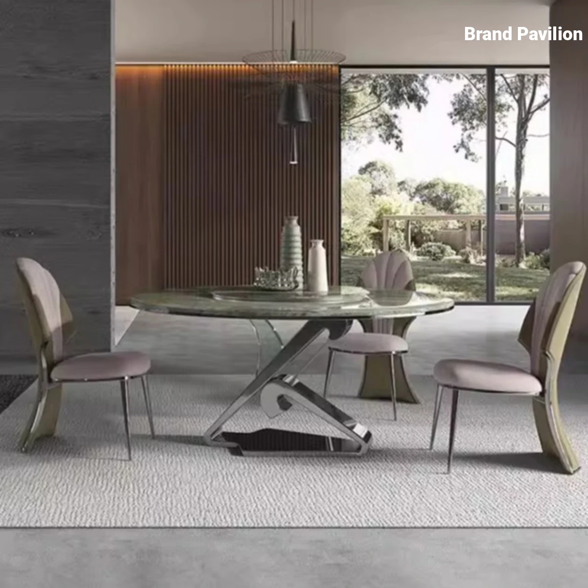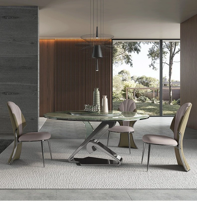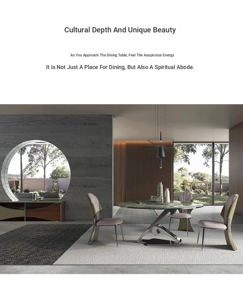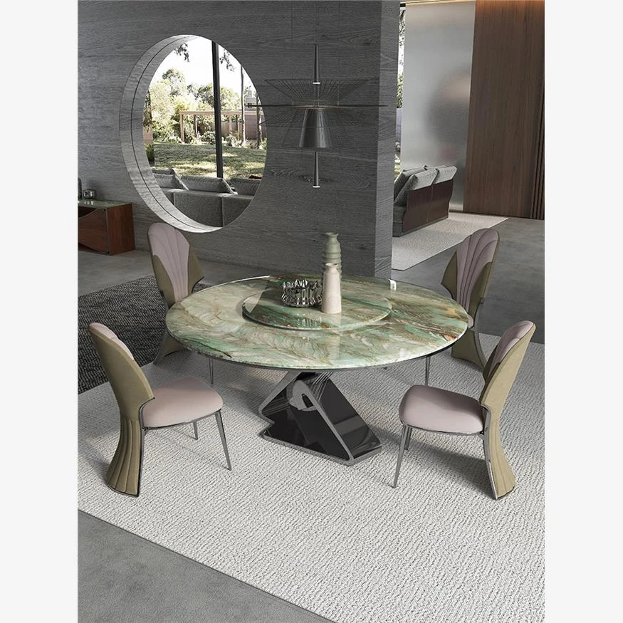 Elegant Italian-Inspired Round Dining Table: Modern Creative Design with Natural Luxury Stone - Perfect for High-End Home Decor and Stylish Gatherings