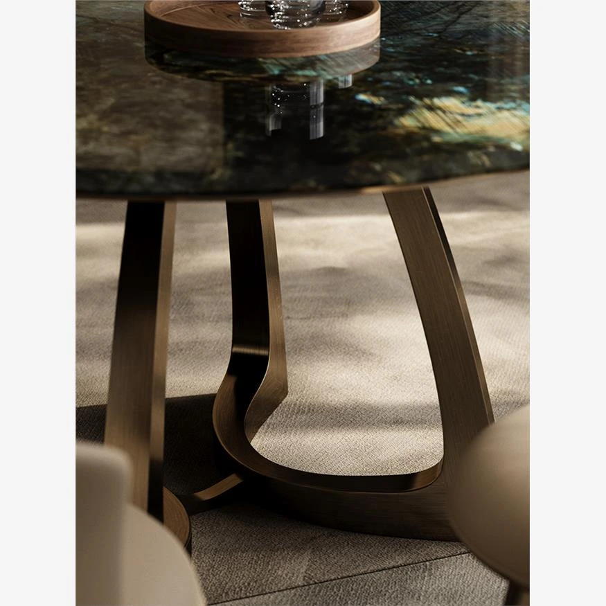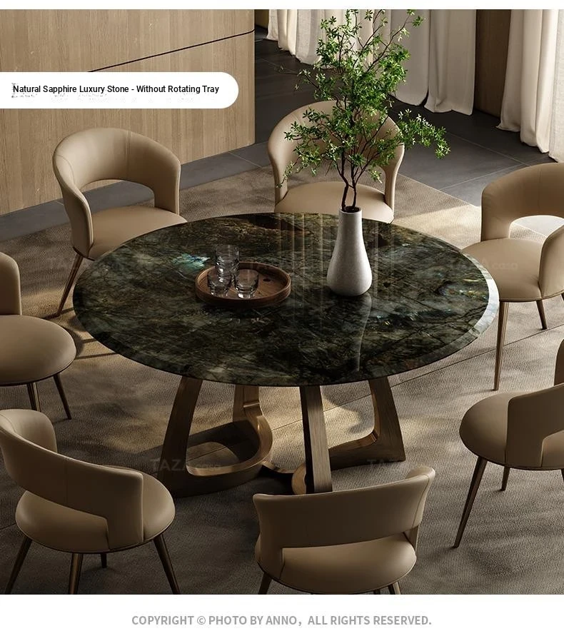 Bronze/Sapphire natural luxury stone dining table 51.18in [with turntable]