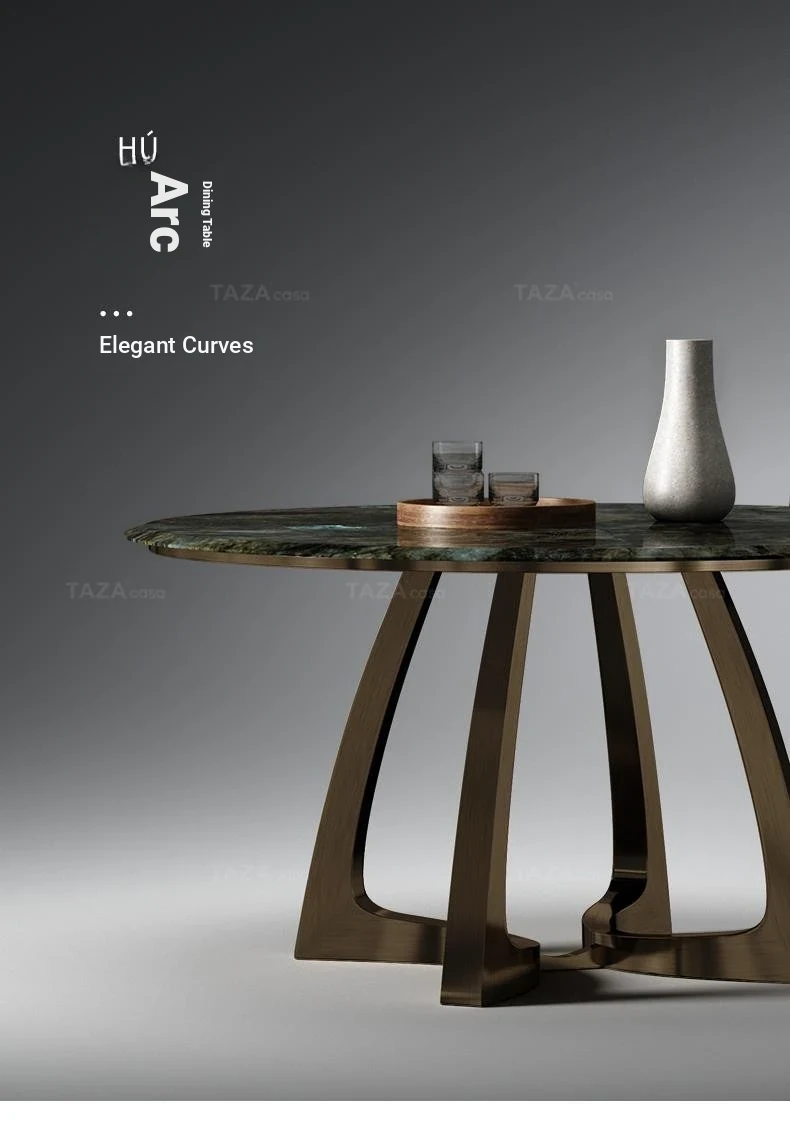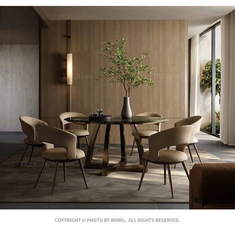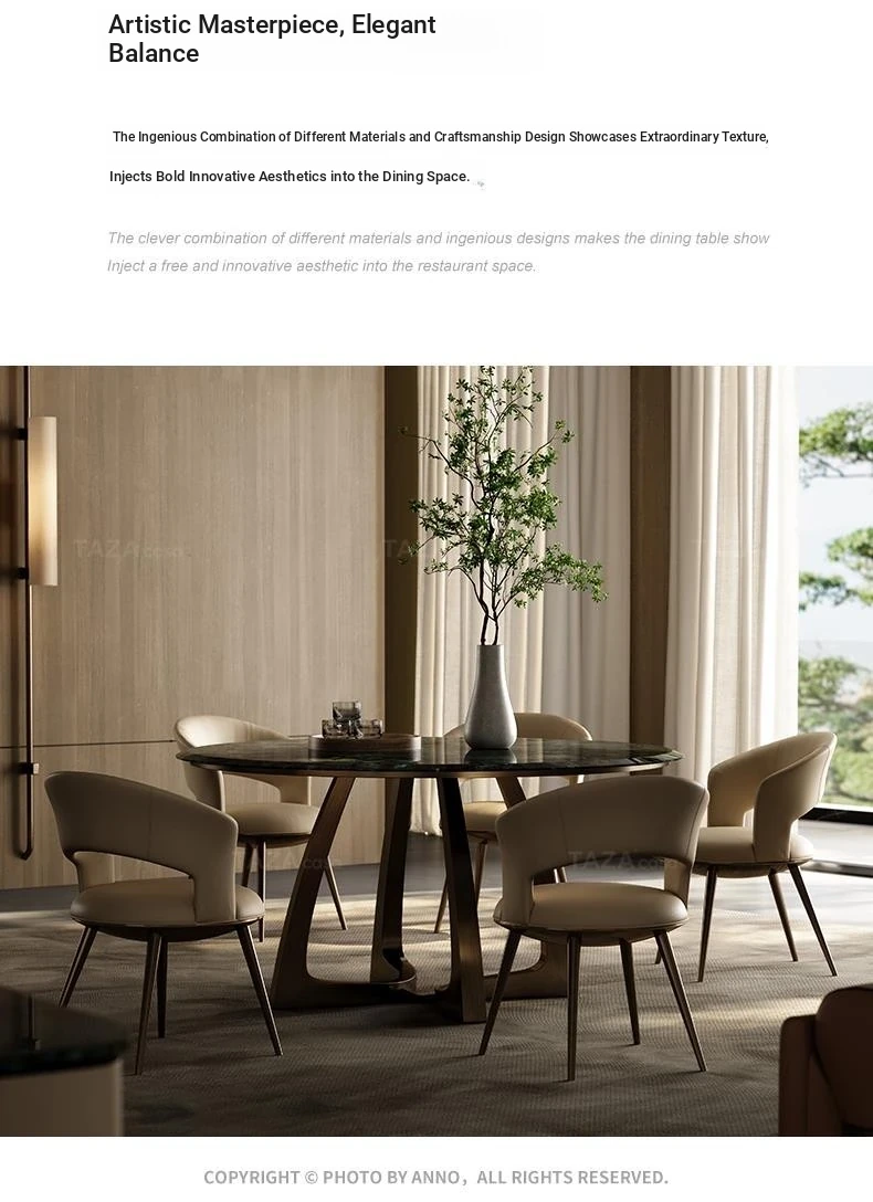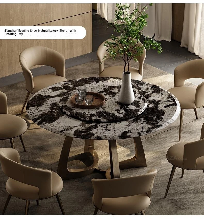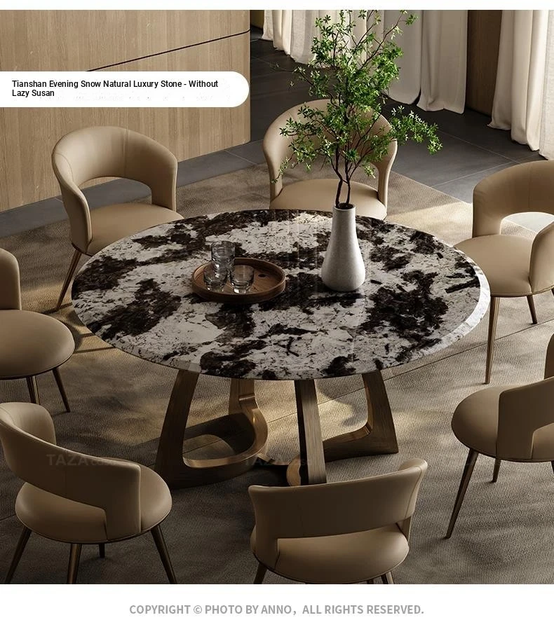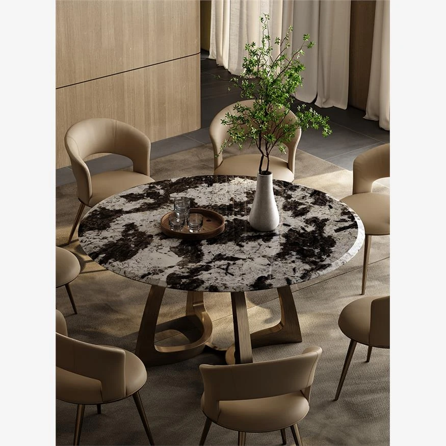 Elegant Italian-Inspired Round Dining Table Set for Villas - Complete Design Package with Natural Luxury Stone, Perfect for Spacious Living Areas and Dining Rooms