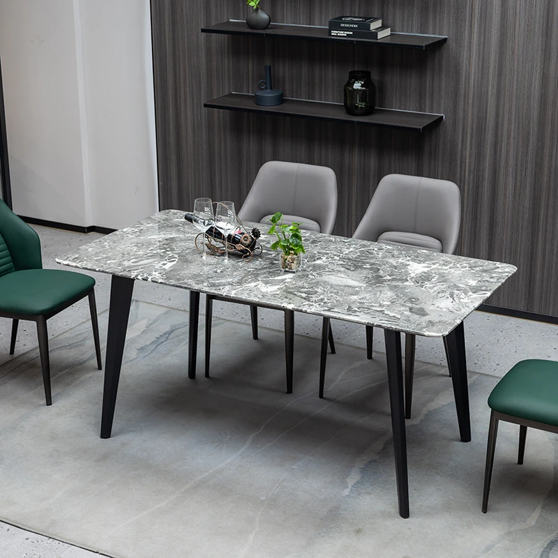Elegant Italian-style Natural Marble Dining Table - Luxury Rectangular Design for Small Spaces, Perfect for Upscale Home Dining with Stylish Chairs