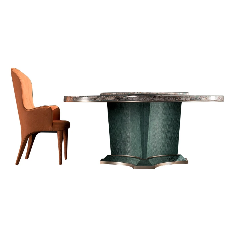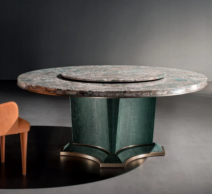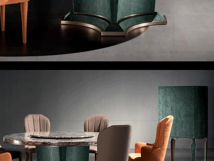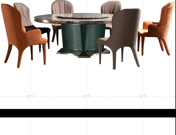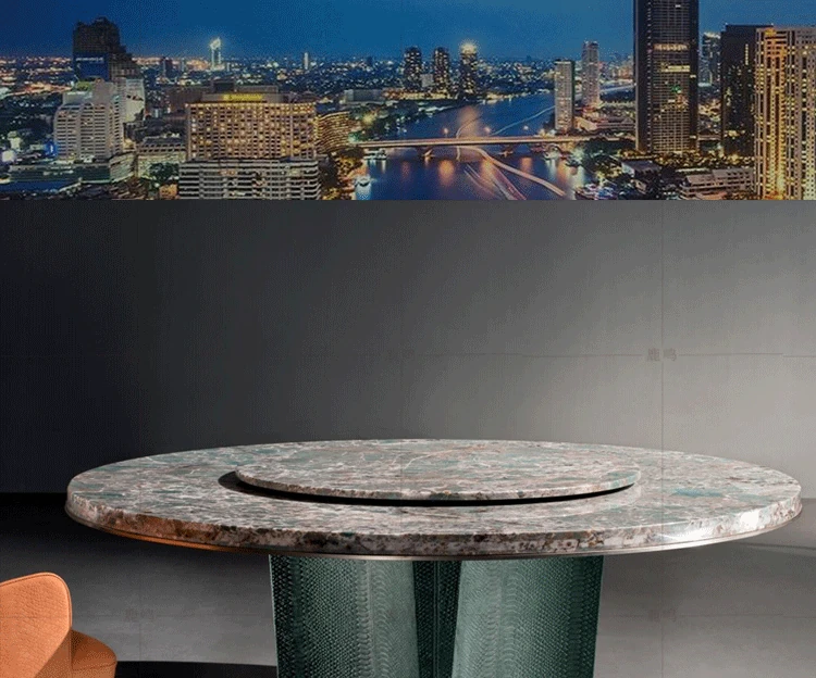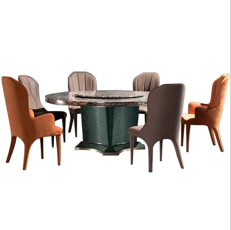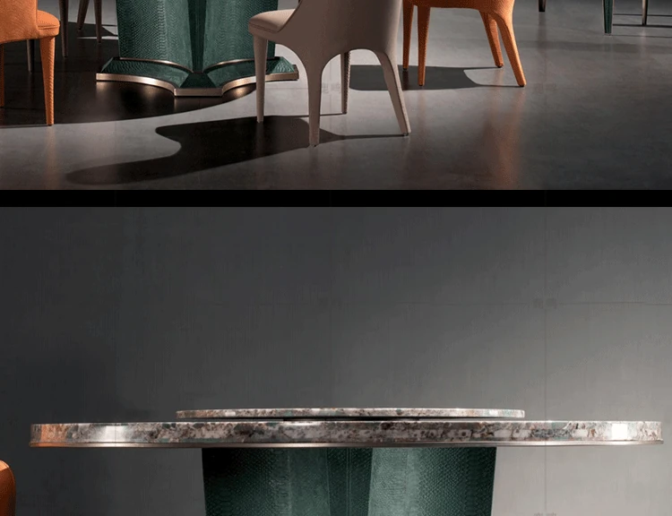 Elegant Luxury Marble Round Dining Table Set for 8 - Stainless Steel Italian Style, Perfect for Villas and Restaurants, Ideal for Entertaining Guests in Style