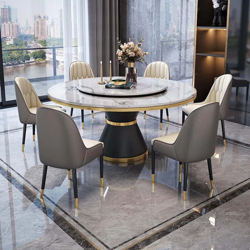 [0.71in] Accessible Luxury marble dining table +6 Chair Cat Claw leather