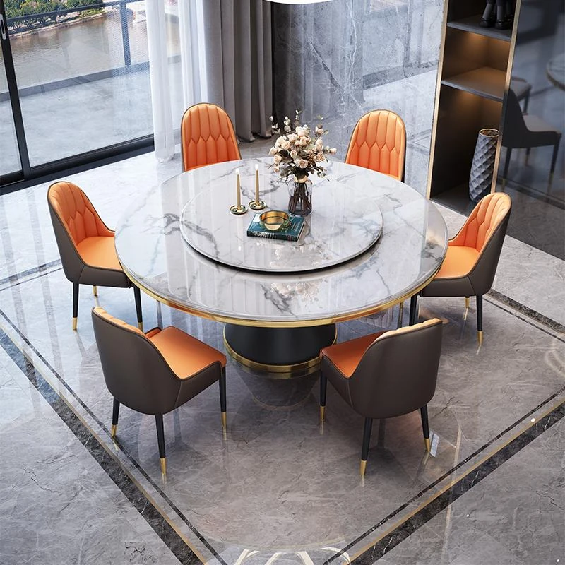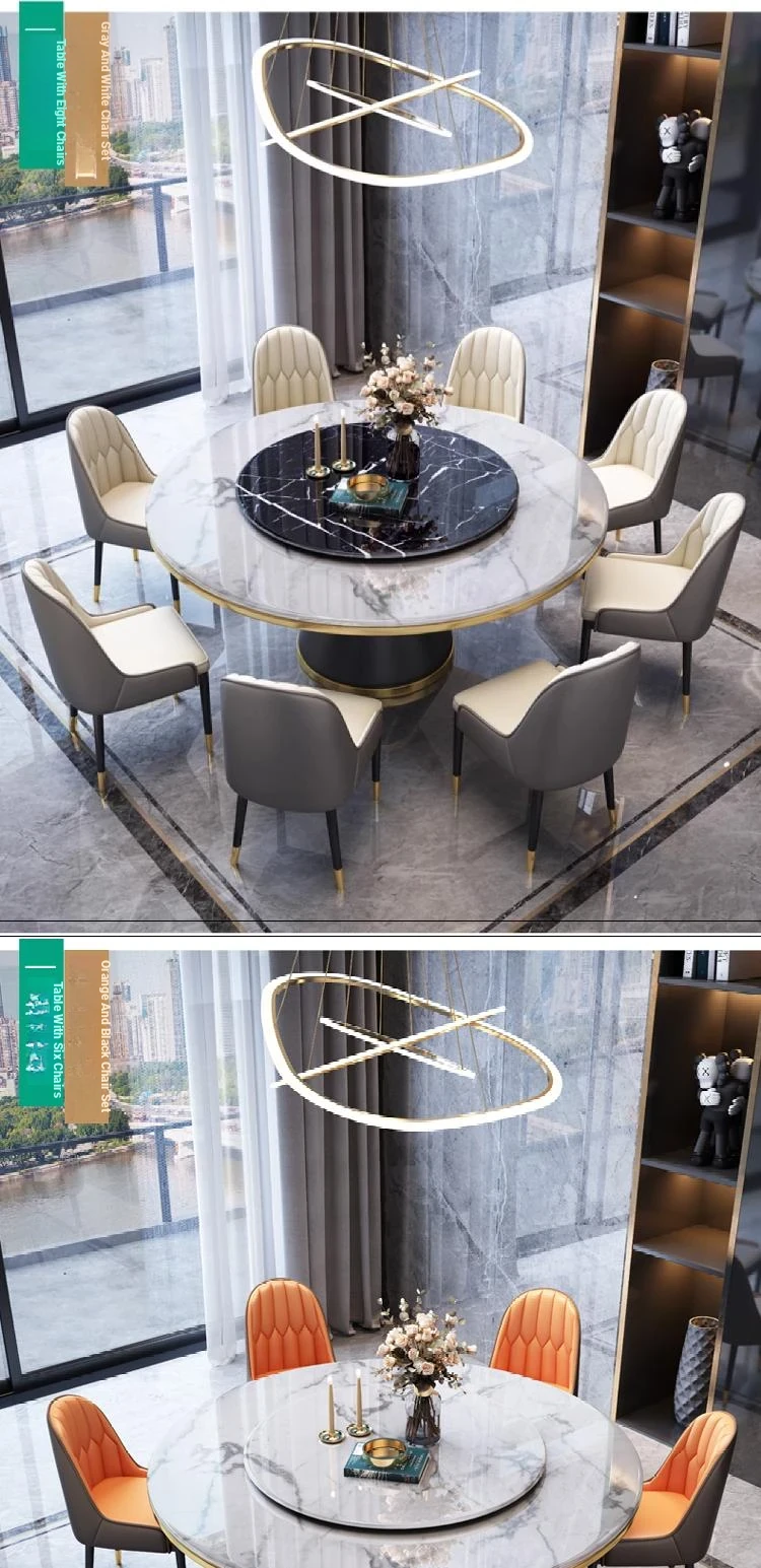 [0.71in] Accessible Luxury marble dining table +10 Chair Cat Claw leather