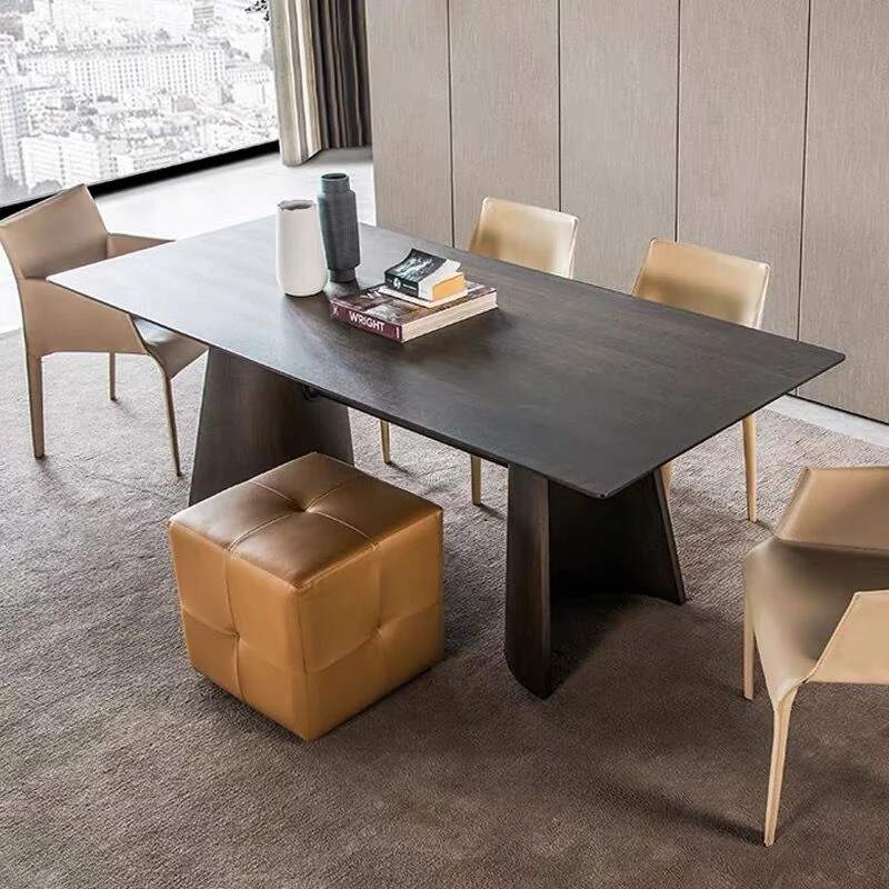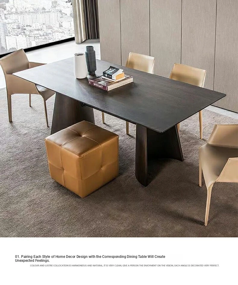 Elegant Marble Rectangular Dining Table Set - Modern Minimalist 8-Person Home Dining Table with 6 Chairs, Perfect for Stylish Dining Rooms