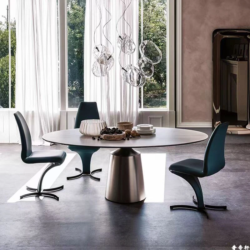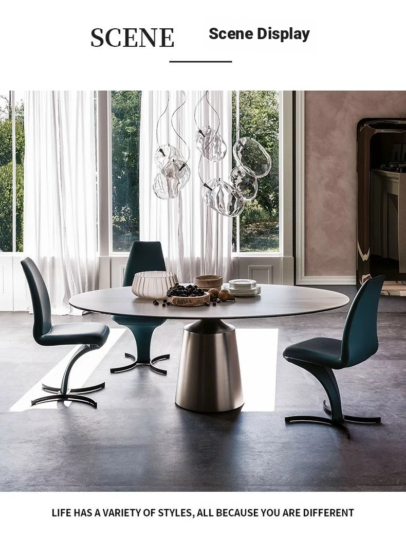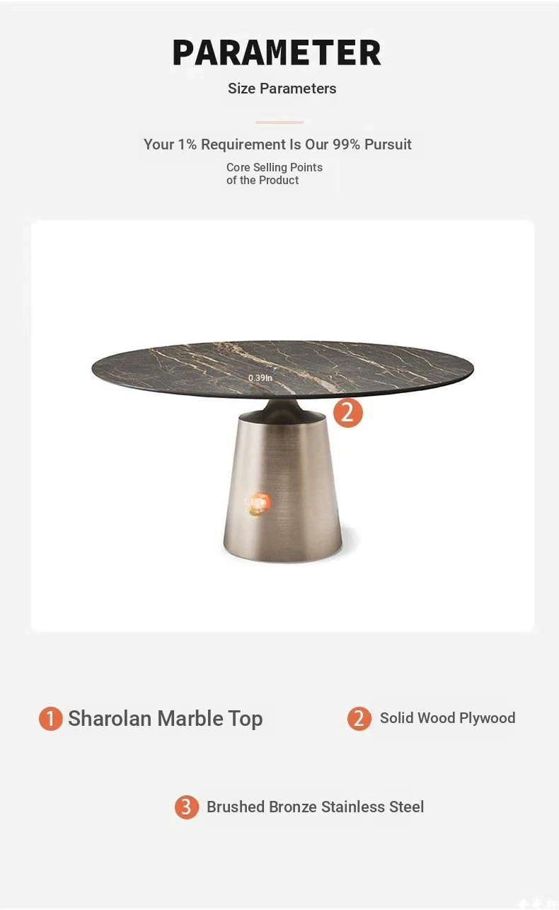 Elegant Minimalist Marble Dining Table for Small Spaces – Designer High-End Italian Luxury Round Table with Lazy Susan for Home Use